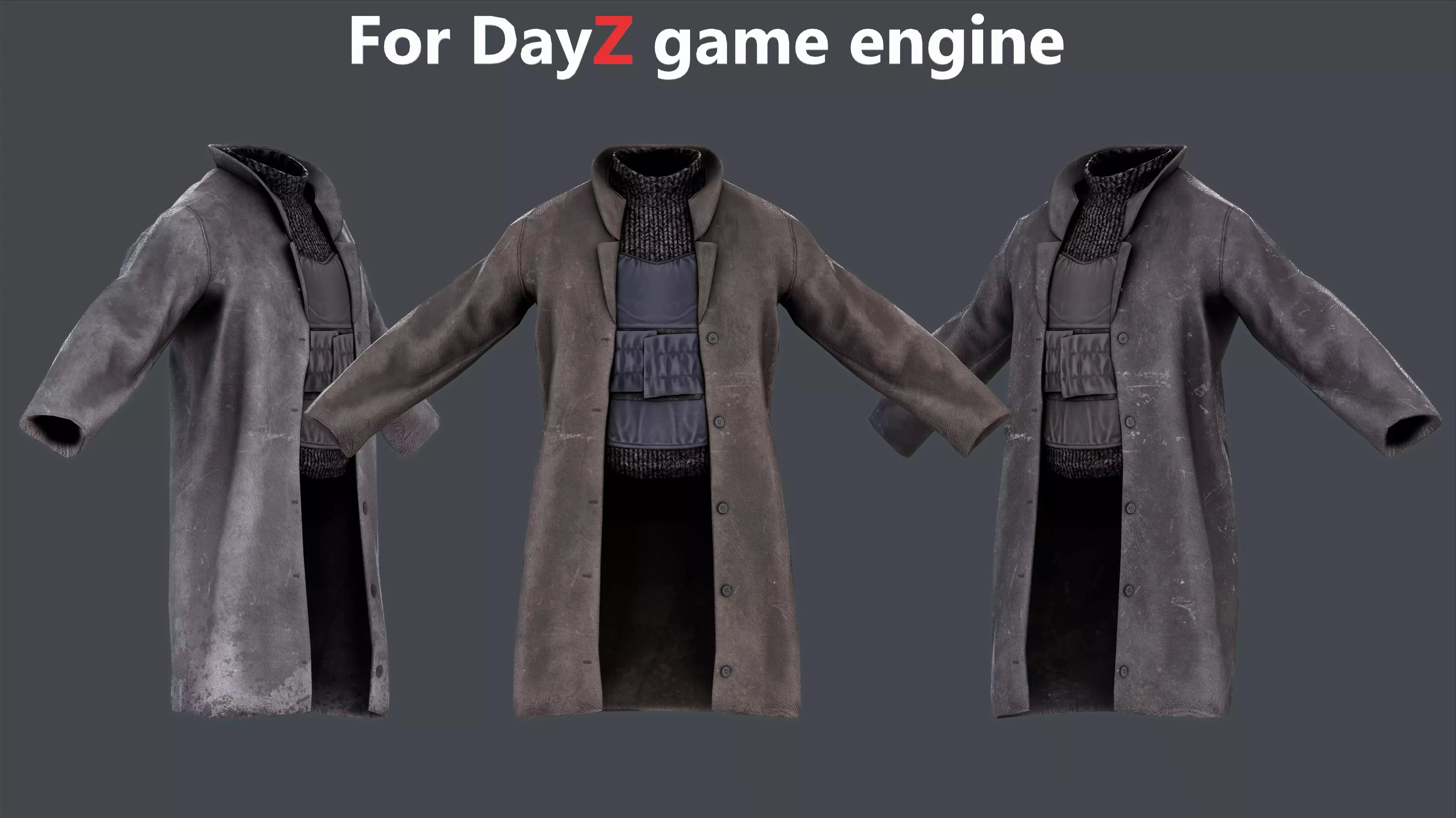 Also check my boots and pants for this coat to make set of bandit cloth https://www.cgtrader.com/3d-models/character/clothing/stalker-like-bandit-pants-and-boots-for-dayz-engine