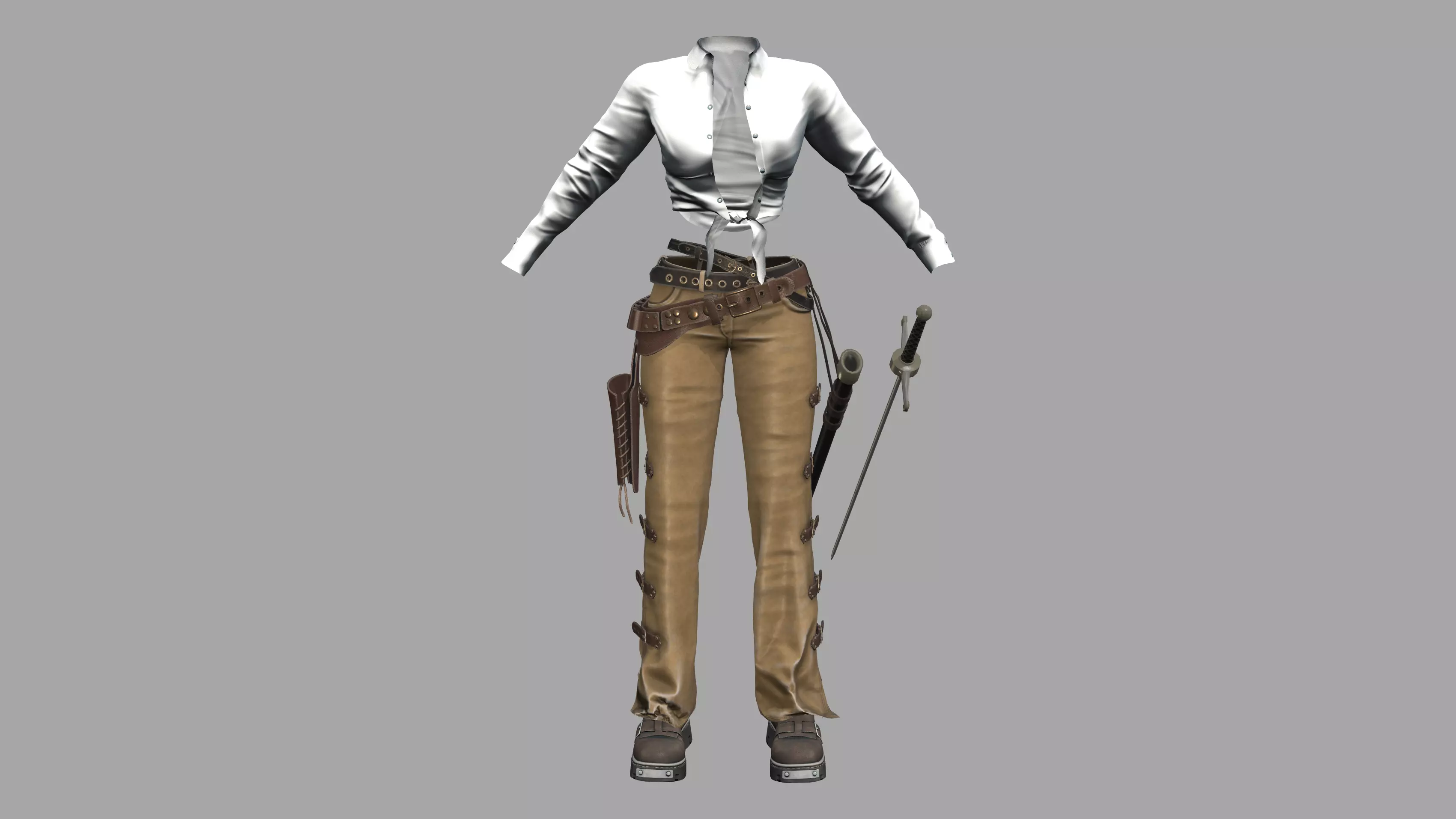 Steampunk Western Outfit Low-poly 3D model