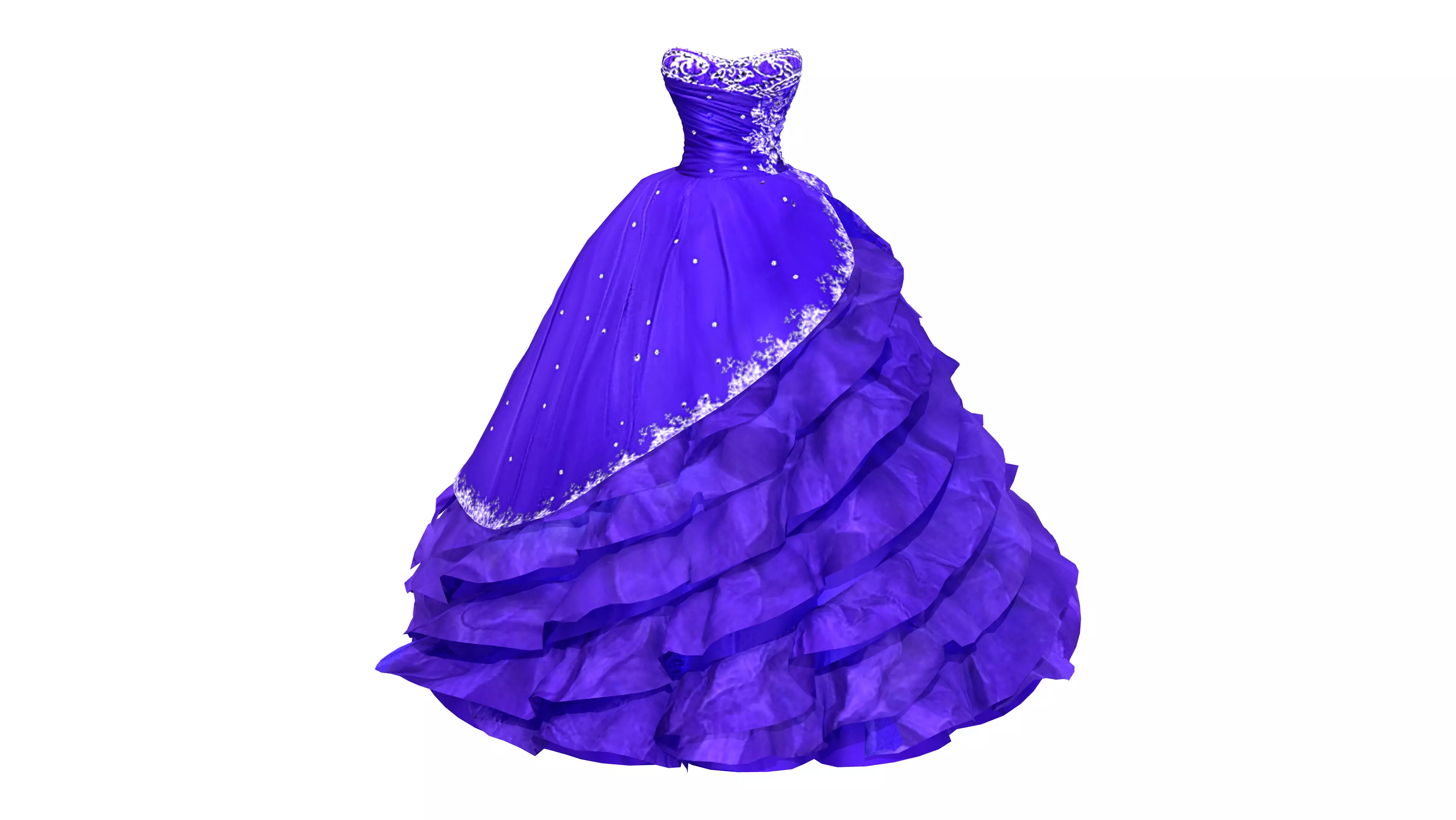 Strapless Ball Gown with Ruffles Low-poly 3D model