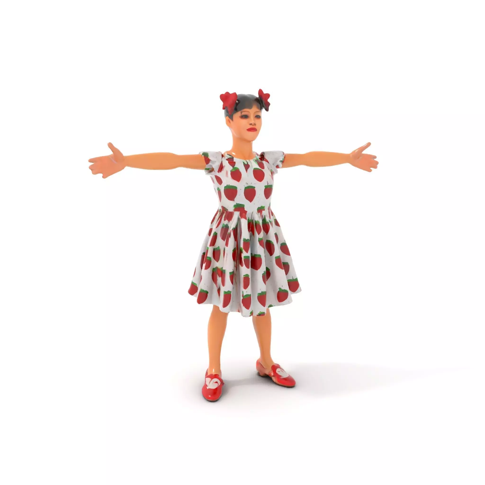 This vibrant Strawberry Pattern Dress model pack captures the essence of playful and cheerful fashion with its colorful design. Perfect for use in animations, virtual fashion showcases, and game character development, the model brings a realistic touch to digital wardrobes. Each model has 3 levels of detail: low-poly (1000 triangles for mobile), middle-poly (10,000 triangles for environments), and high-poly (100,000 triangles), which allows for the use of this model in production rendering (such as 3ds Max, Maya, Cinema 4D, Blender, Vray/Corona/Cycles and all others), game engines (Unity and Unreal compatible), and interactive presentations, providing a choice of detail based on the LOD System principle. The model's textures are PBR, Diffuse, NormalMap, and reflection/roughness/metallic, which are suitable for any modern rendering engine. All models are accurately unwrapped and have no overlapping UV. All textures are 4096*4096 in size. The first image is the reference used for creating the 3D model. It is important to carefully evaluate the quality of the model by examining the preview images that display the topology and polygonal mesh. These previews (WIRE and WEB 3D Preview) clearly demonstrate how accurately the model matches the original reference and how well the geometry has been executed. If you enjoy the model, please like and leave a comment.