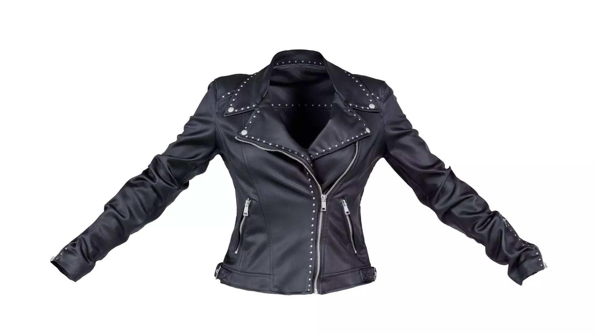 Polygonal Miniatures presents studded leather jacket, a model from our 3D scanned catalogue. The model, a black leather jacket with studded detailing, is obtained by photogrammetry, and scanned using SLR camera's.Processing takes place in Zbrush and Photoshop and the resulting 3D model has unwrapped, non overlapping UV's, and a texture and normal map. Before publishing, we make sure the model has real world scale (meters), correct shader setup and is centered at the origin.Apart from the various file formats, we also offer a Blender file with material and textures set-up, ready for export and rendering. More info can be found below: