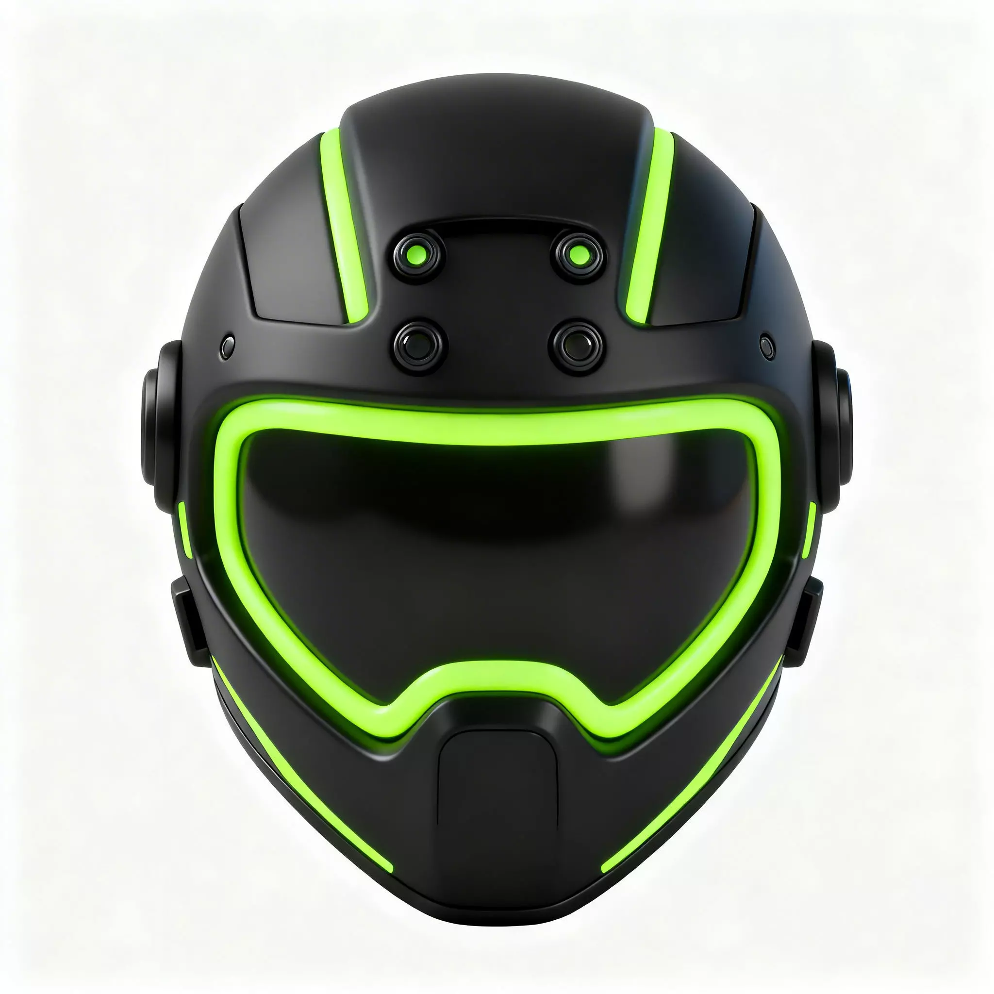 Sleek Matte Black FinishThe main body of the helmet is finished in a uniform, matte black texture. This stealthy and professional palette emphasizes the model's smooth, rounded proportions and provides a high-contrast base for its vibrant neon accents, ensuring a consistent cartoonish art style.