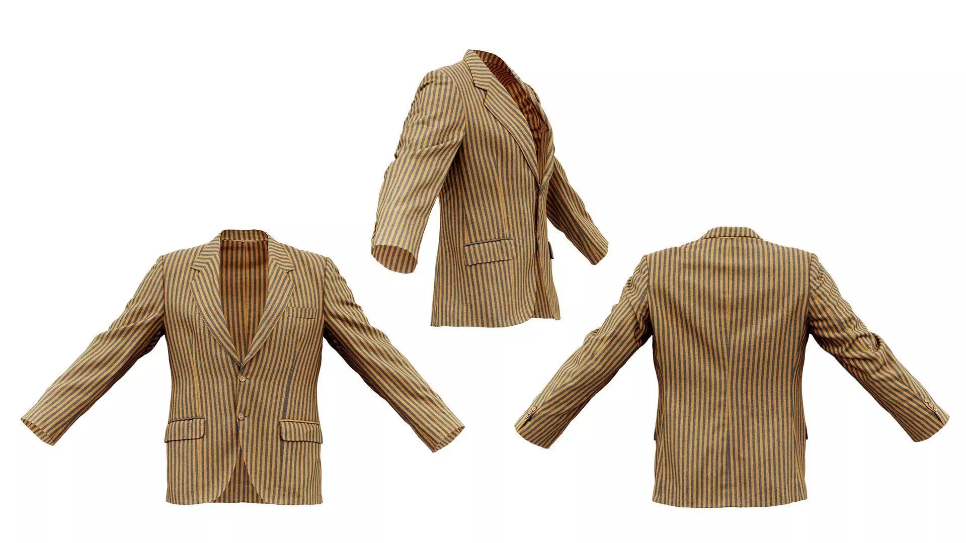 Scanned using photogrammetry this model, Suit F Vest makes for fine photorealistic shape and detail. The famous Belgian costume designer, Huis Baeyens, designed the original clothing. They granted Polygonal Miniatures permission for scanning and selling part of their catalog, which consists of roughly 100.000 costumes.