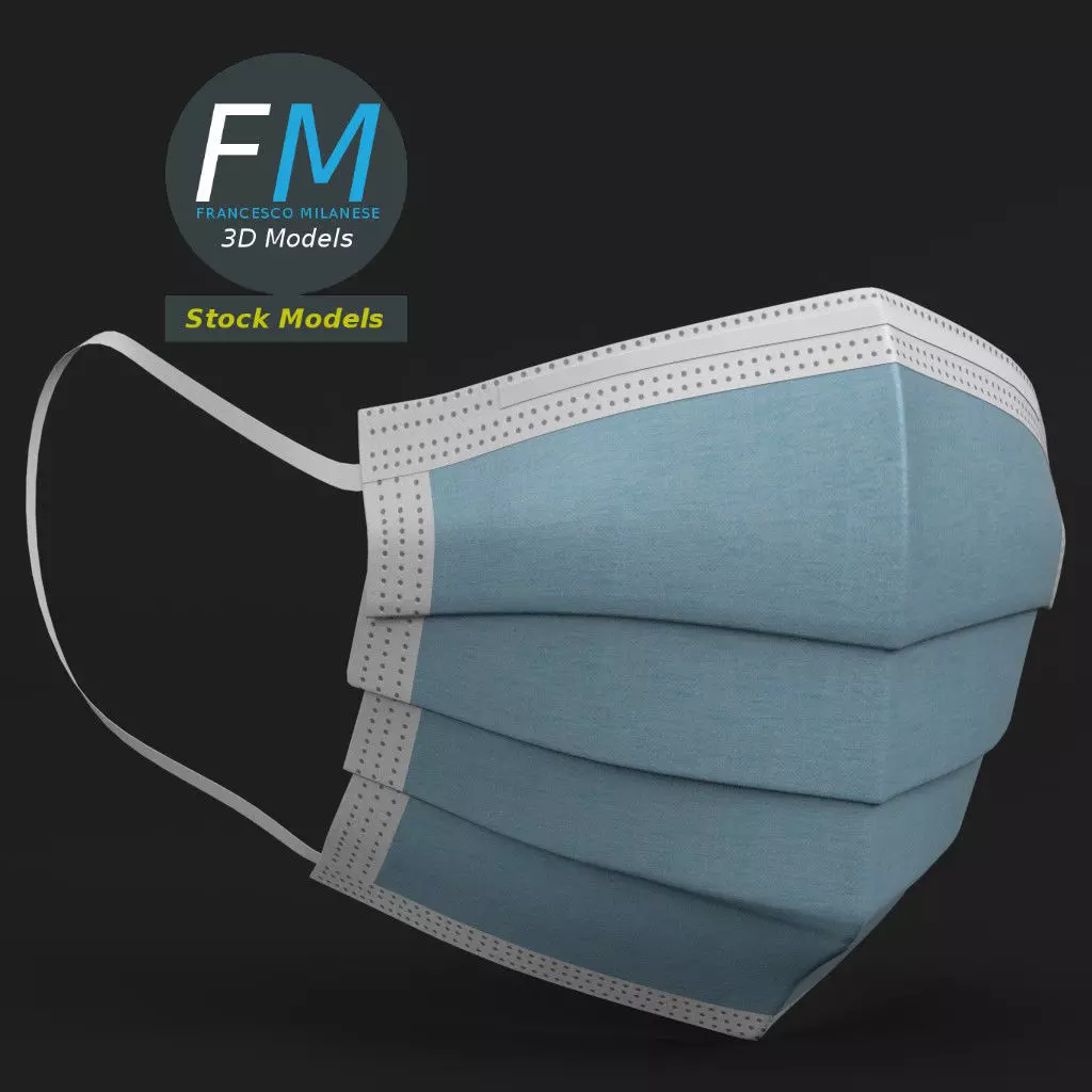Surgical mask 3D Model, nr. 2 in my collection (it is a lower-poly version of my previously published surgical mask 3D model). Production-ready 3D Model, with PBR materials, textures, non overlapping UV Layout map provided in the package.