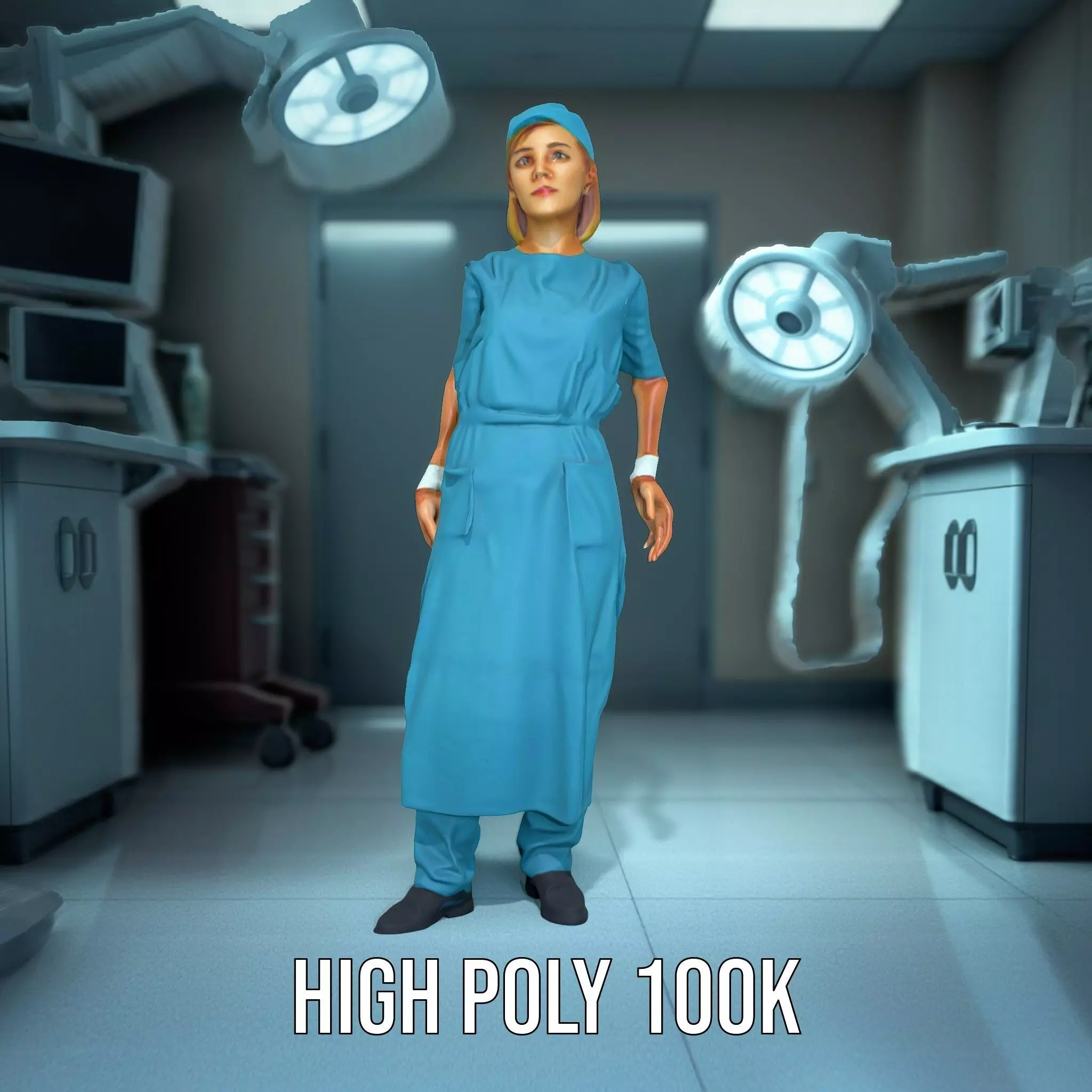 This 3D model pack features a detailed surgical nurse uniform, perfect for medical scenes or educational simulations. Each model comes with three levels of detail: low-poly (1000 triangles) for mobile, middle-poly (10,000 triangles) for environment, and high-poly (100,000 triangles) for production rendering. Textures include PBR, Diffuse, NormalMap, and reflection/roughness/metallic, accurate for modern rendering engines. Unwrapped UV with no overlaps ensures easy use. Ideal for healthcare simulations, hospital environments, or VR training. Please like and leave a comment if you enjoy this model. All textures are 4096*4096 in size.
