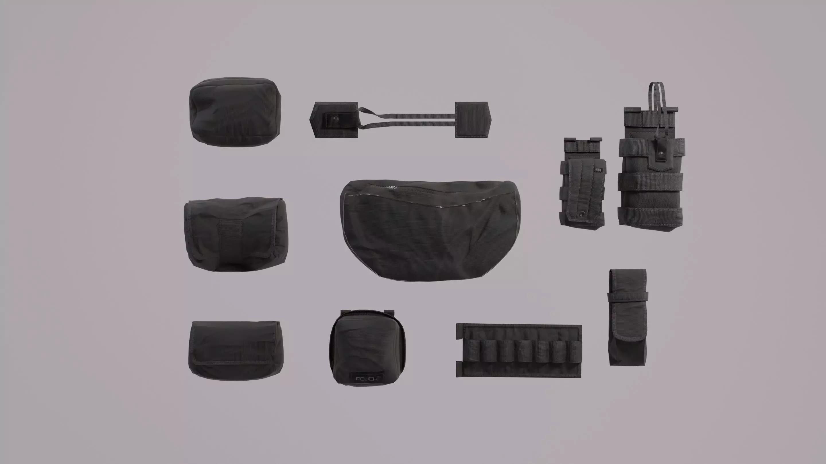 Detailed Low-poly Tactical Pouches Kitbash. Good topology for animations, games and lossless silhouette.