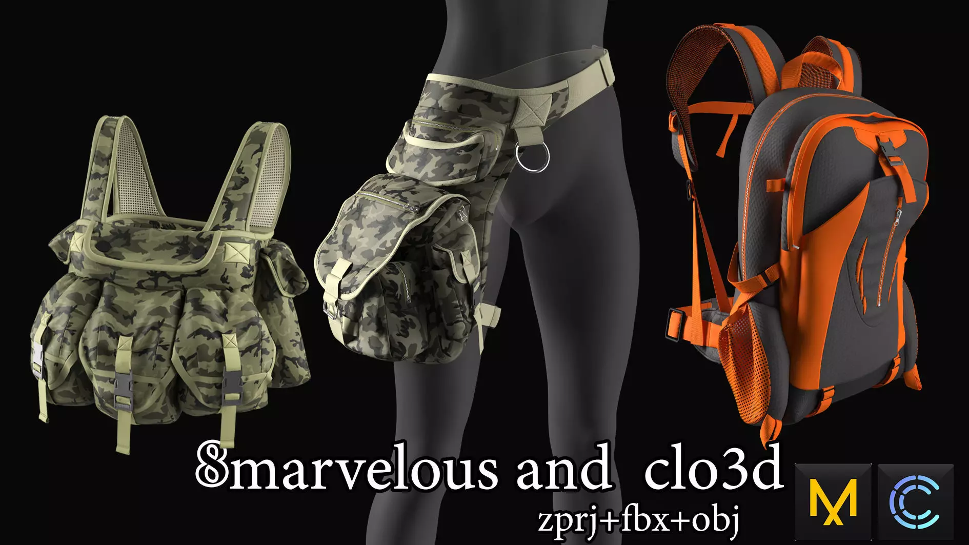 Three 3d game models of gaming bags at marvelous 3D model