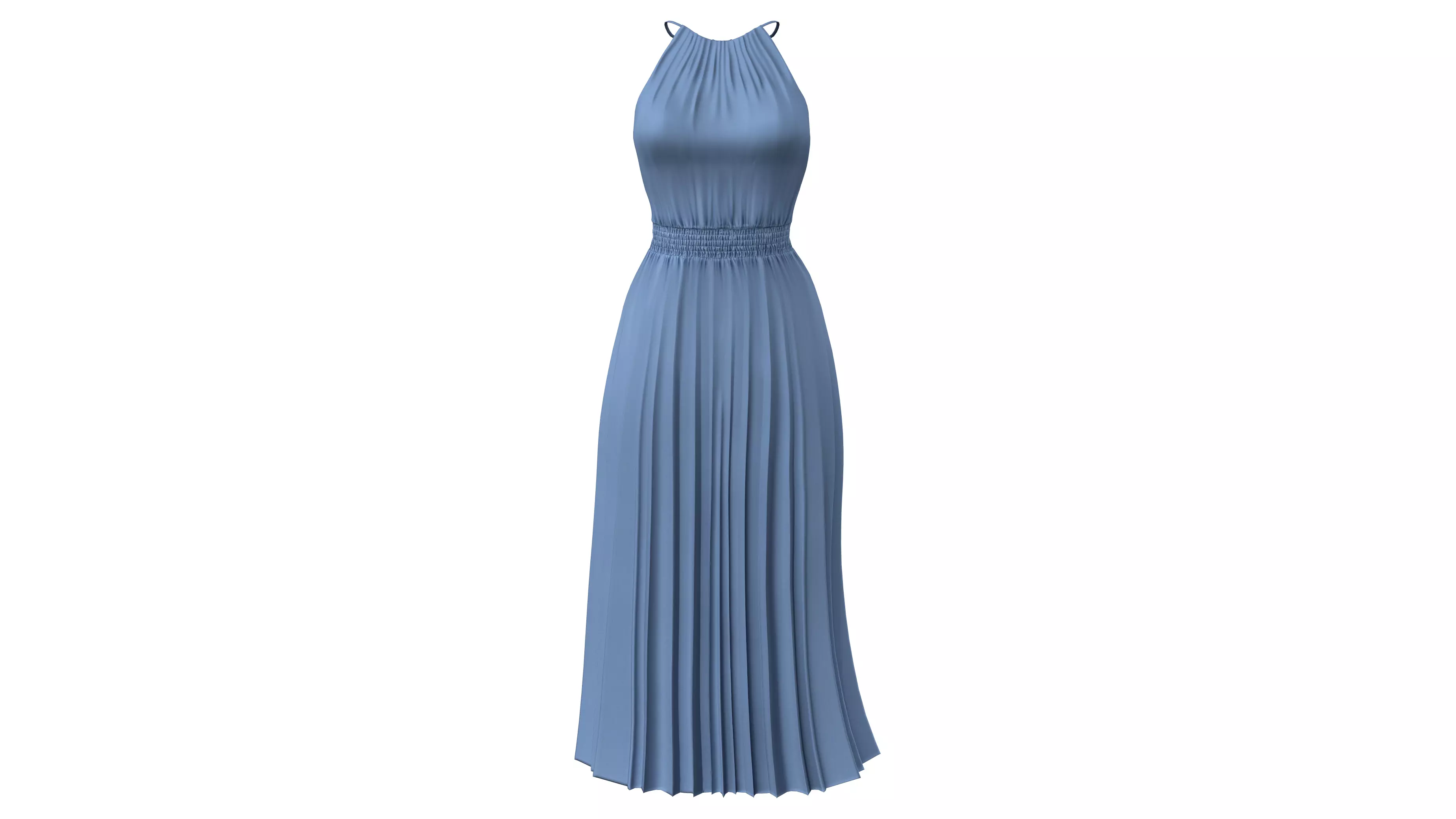 Tie Back Shirred Waist Pleated Hem Halter Dress Low-poly 3D model