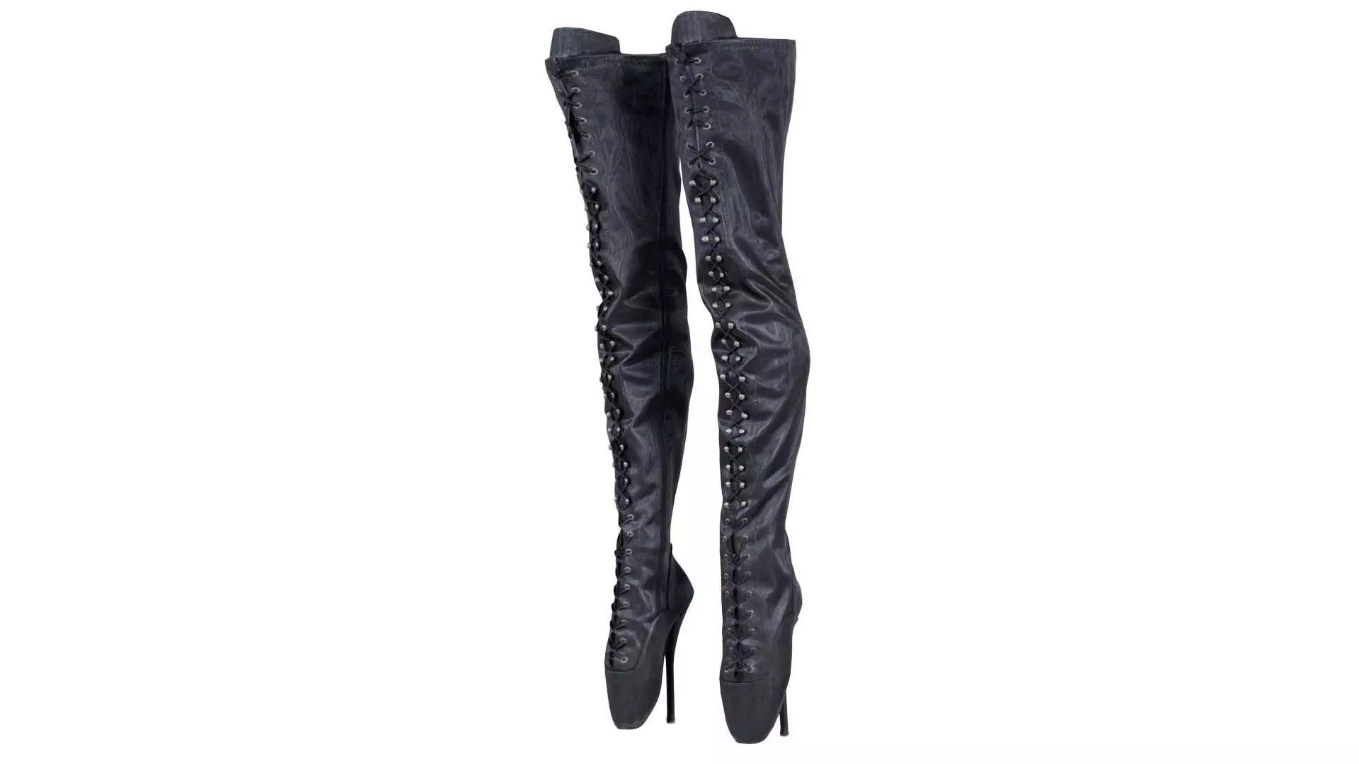 3D scanned model featuring a pair of black thigh high boots with lace. This model, tighhigh ballet boots, has been created using photogrammetry from a real world object.The raw scan data has been cleaned, retopologized and UV-unwrapped using Zbrush. The result is a low poly mesh with baked maps. The .obj and .mtl are configured so that maps will load automatically in the shader (tested in Blender). In addition, a Blender scene is provided with the model and shader already set up for rendering and export. Detailed information below:
