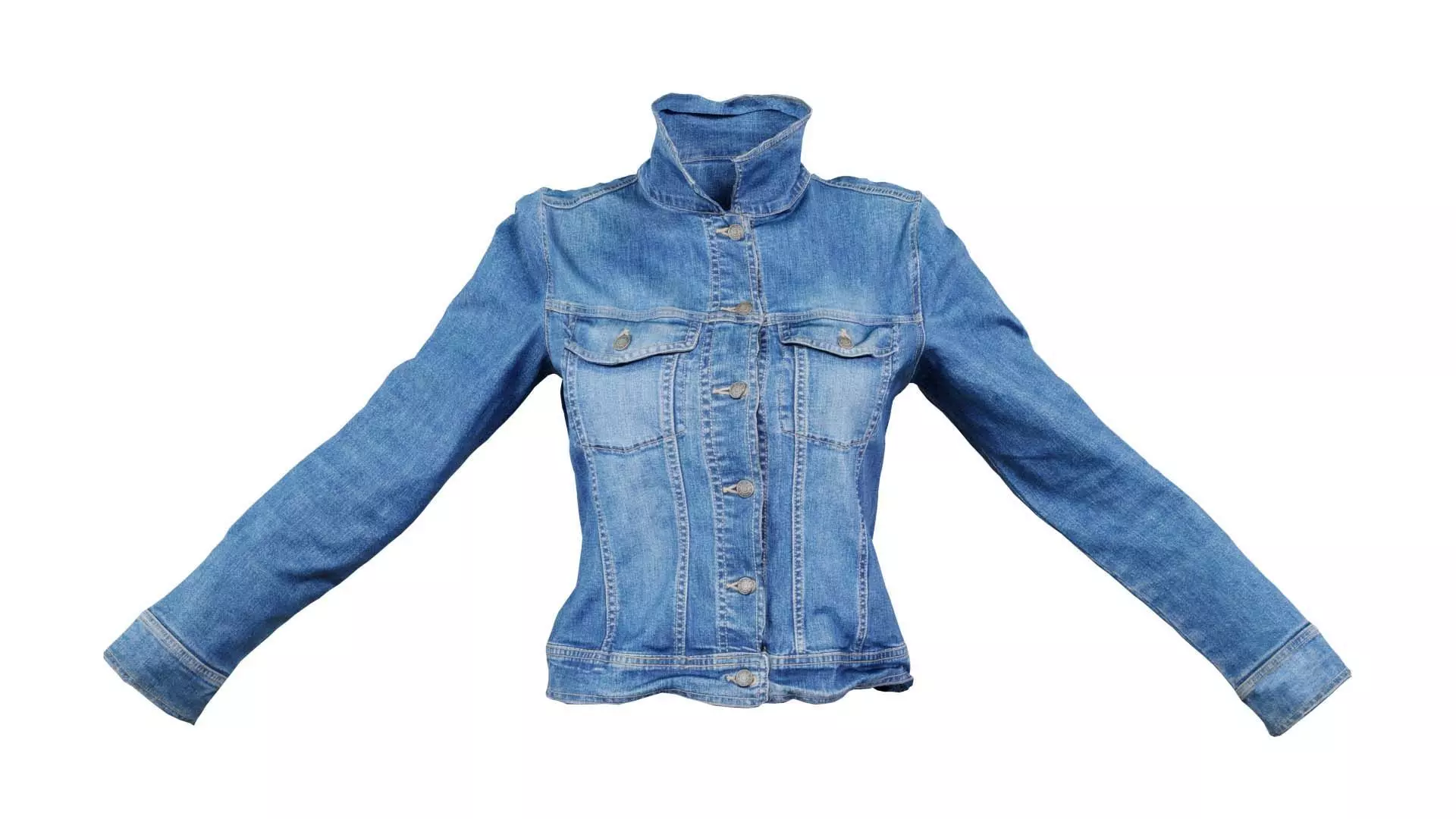 3D scanned model featuring a woman's denim jacket with sleeves. This model, tiny jeans jacket closed, has been created using photogrammetry from a real world object.The raw scan data has been cleaned, retopologized and UV-unwrapped using Zbrush. The result is a low poly mesh with baked maps. The .obj and .mtl are configured so that maps will load automatically in the shader (tested in Blender). In addition, a Blender scene is provided with the model and shader already set up for rendering and export. Detailed information below: