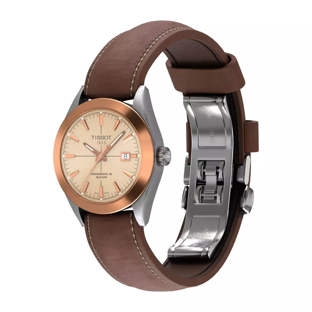 Tissot Gentleman Powermatic 80 Silicum Brown Leather Cream Low-poly 3D model