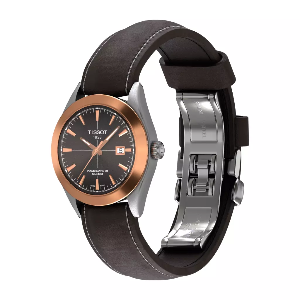 Tissot Gentleman Powermatic 80 Silicum Brown Leather Sunray Low-poly 3D model