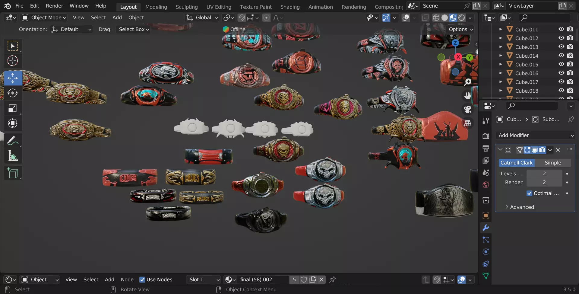 The model has material settings that define how surfaces look (color, shine, transparency, etc.).
