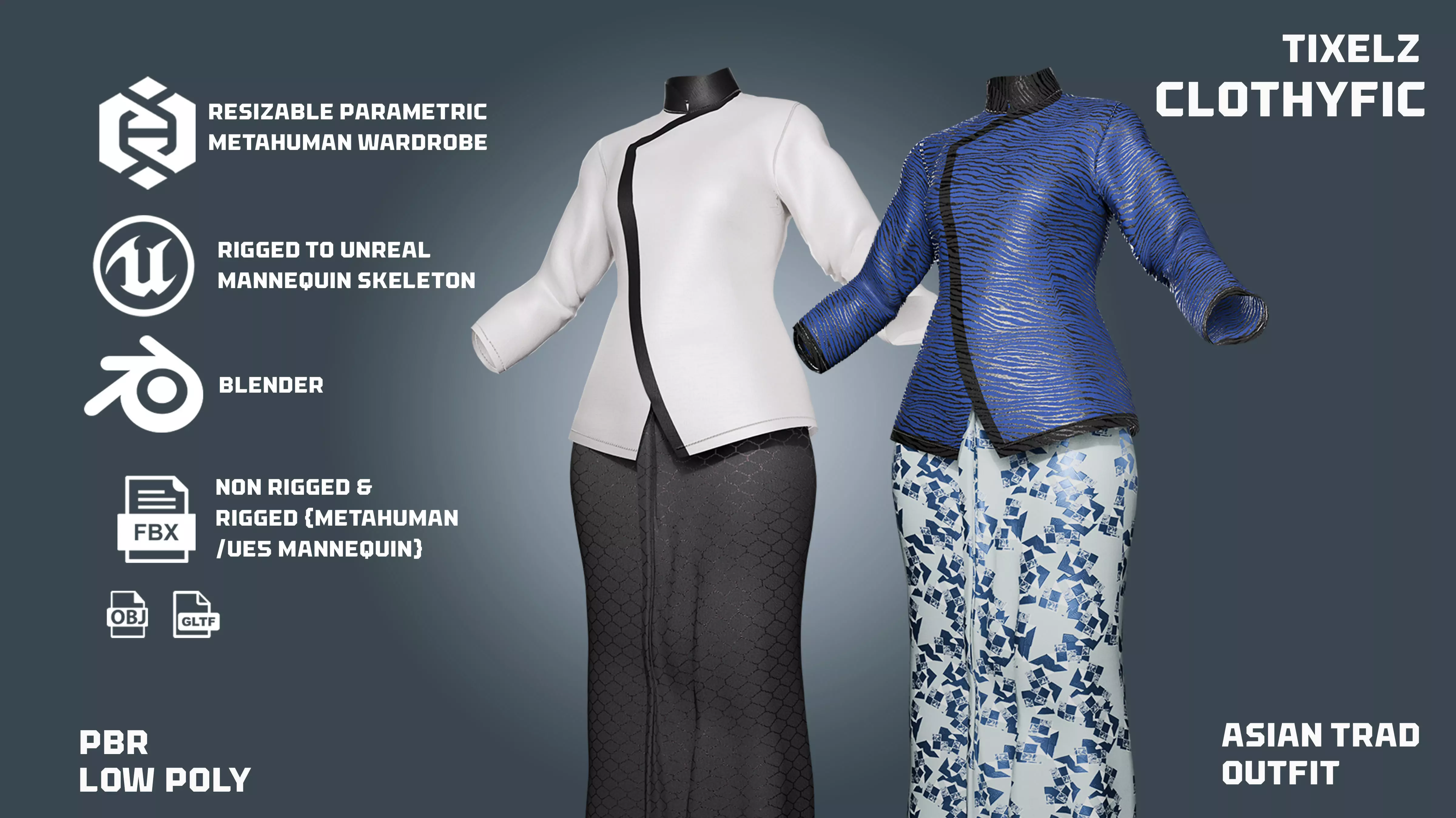 Formats – Blender (.blend), FBX, OBJ, GLTF, and Unreal .uasset files