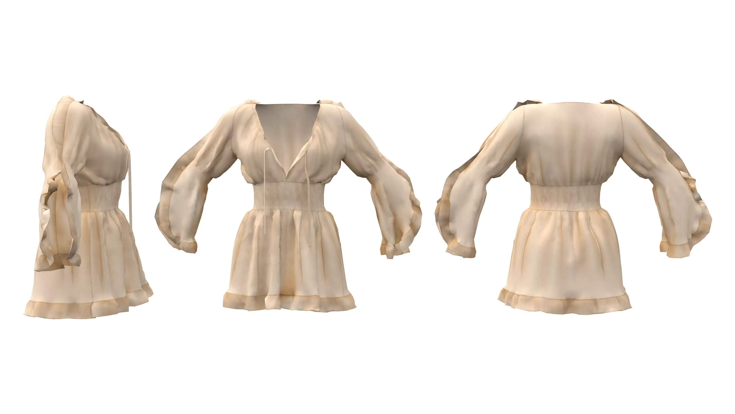 Trumpet Sleeve Flouncing Tunic Dress Low-poly 3D model