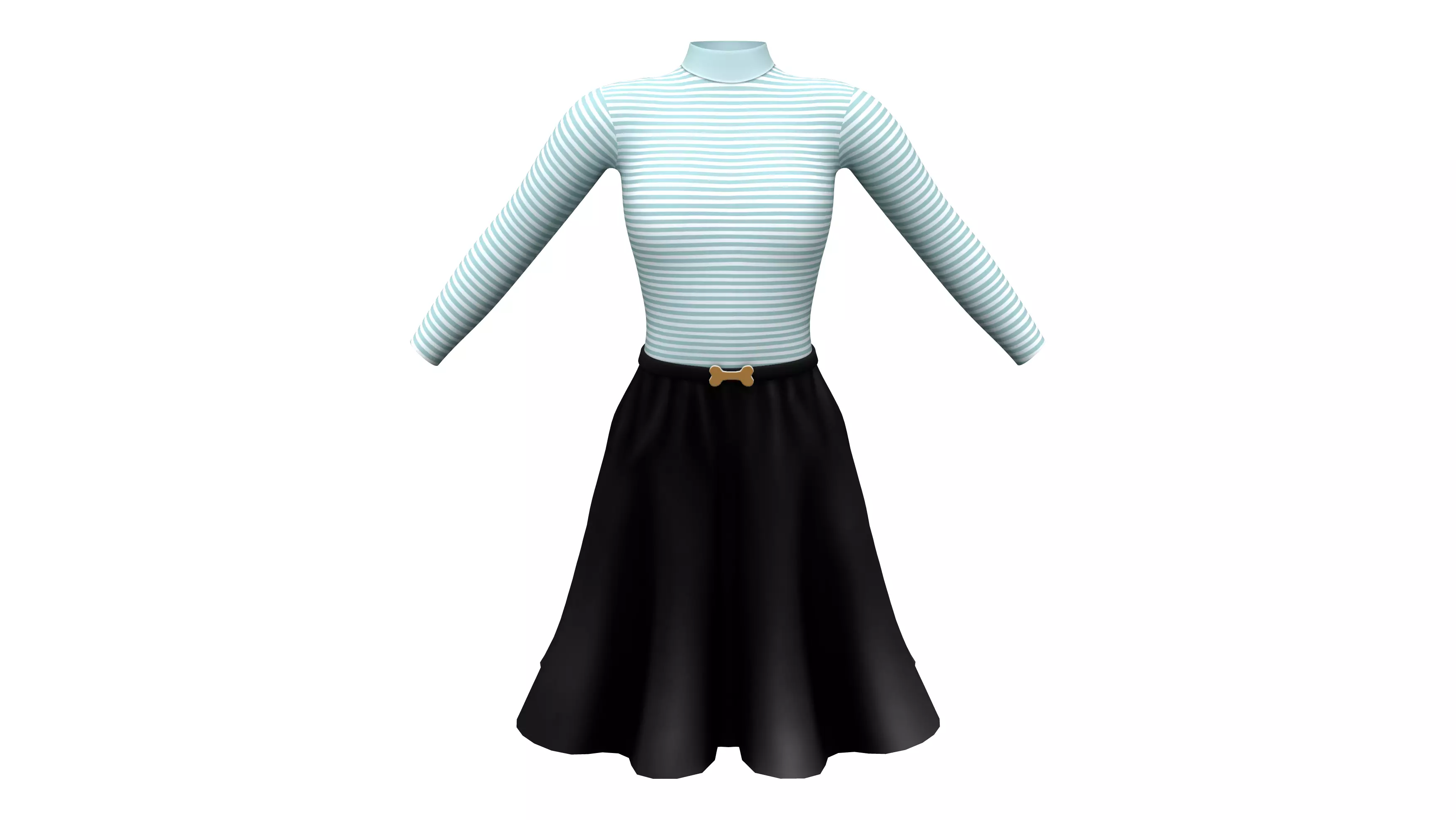 Turtle Neck Over Knee Flaring Skirt Outfit Low-poly 3D model