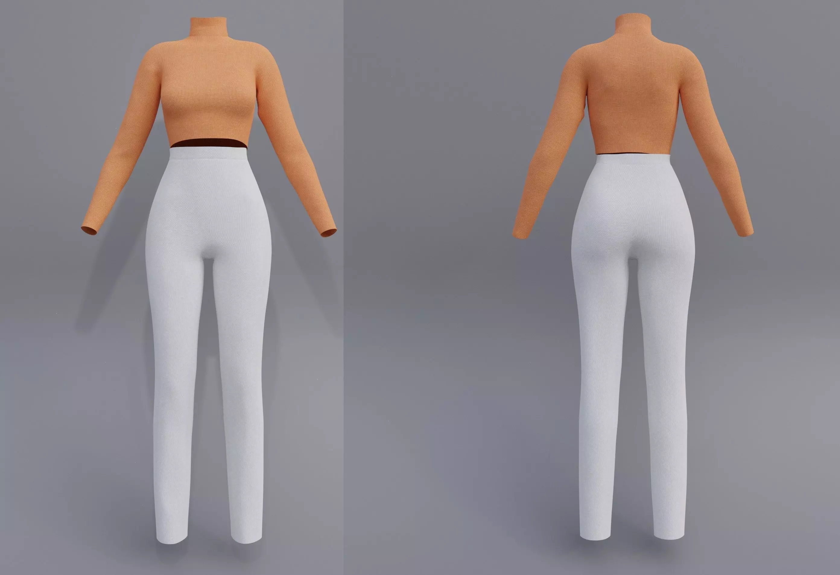 this is a high quality, 3D Turtleneck croptop and pants that will enhance detail and realism to any of your rendering projects. The model is a detailed design that allows for close-up renders. Blend file contains already set up lighting and camera which you easily import more props and render according to choice