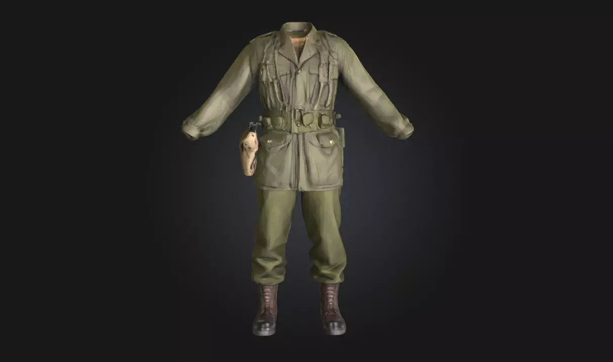 Uniform Display is a highly detailed 3D model of a World War II-era soldier’s outfit, carefully recreated for historical accuracy and visual impact. Featuring authentic gear, period textiles, and regulation insignias, this model is perfect for wartime dioramas, museum visualizations, or cinematic recreations.