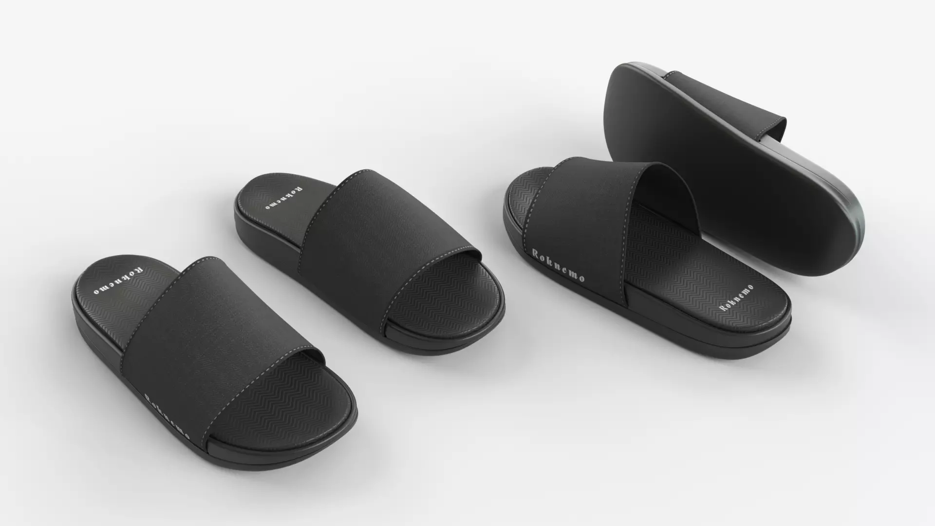 Unisex Black Slide Sandals. the model features clean geometry (no N-gons) , unwrapped UV maps,high-resolution 2K and 4K PBR textures.