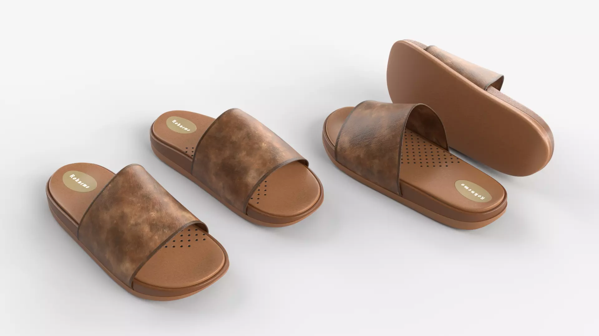 Premium Unisex Brown Slide Sandals - Professional 3D Model