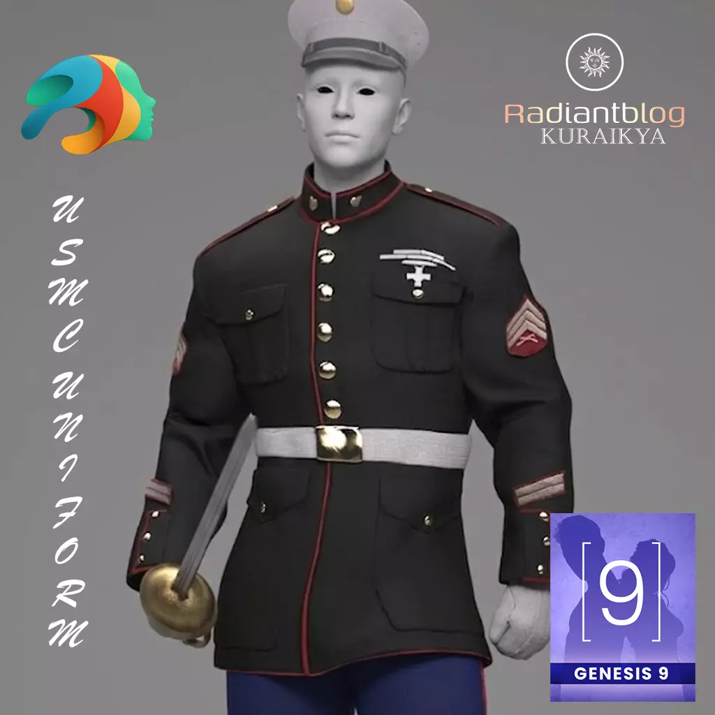 Elevate your military renders with this highly detailed and authentic USMC Dress Uniform, specifically designed for the Genesis 9 figure. This set captures the prestige and precision of the United States Marine Corps ceremonial attire, ensuring your characters look sharp for any formal occasion or parade ground scene.