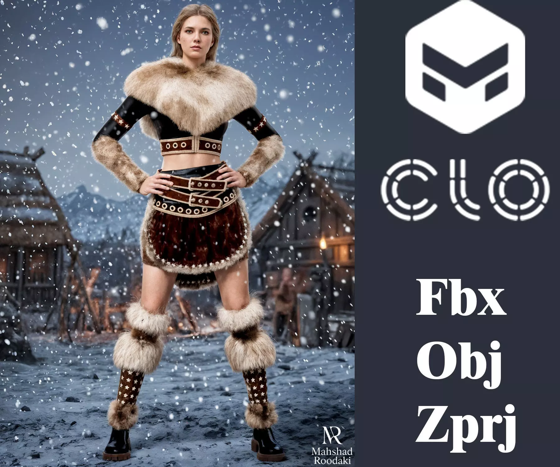 Viking Shield-Maiden Winter Outfit | High-Quality 3D Fashion Asset for CLO3D / Marvelous Designer
