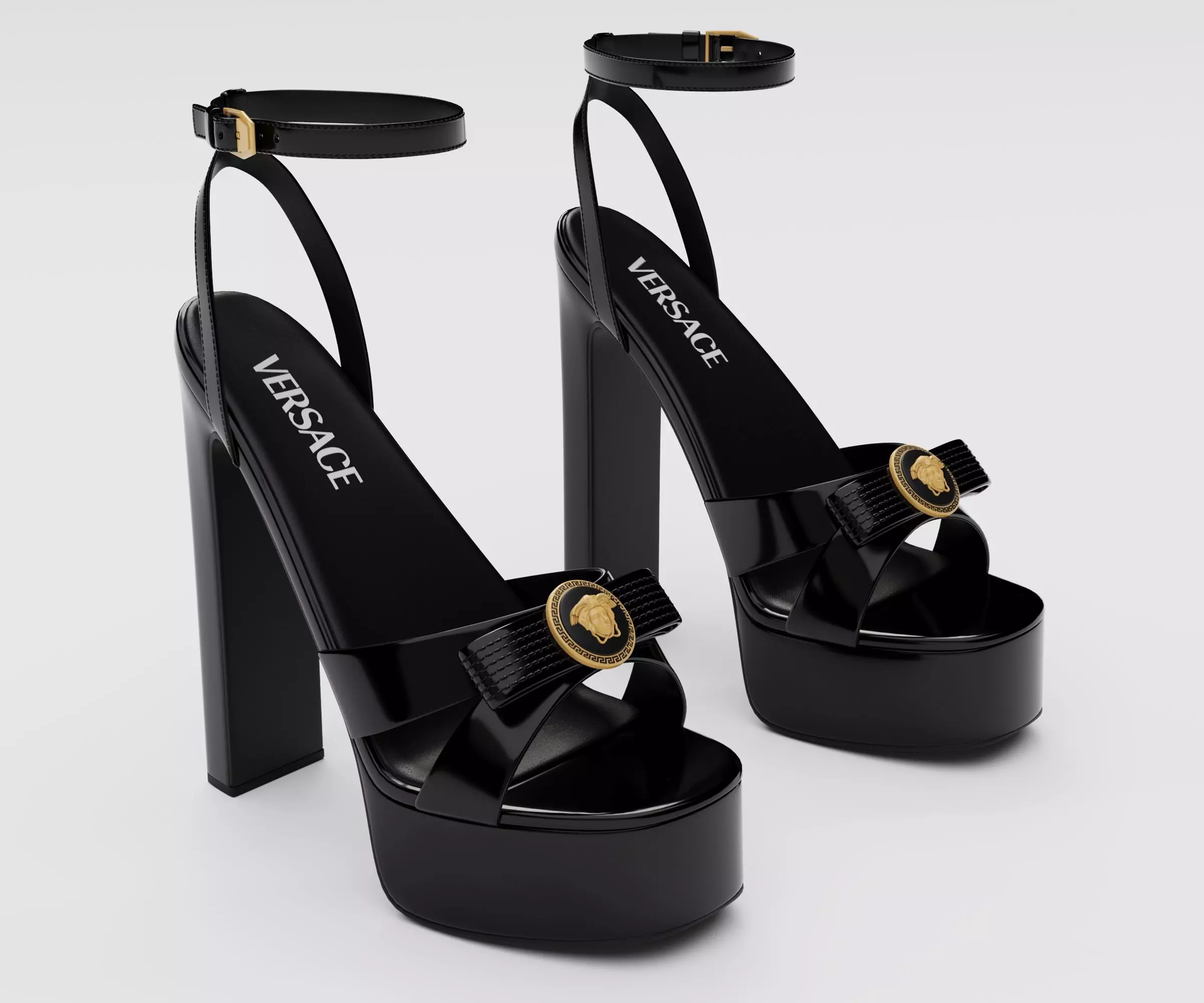 Versace gianni ribbon patent black sandals Low-poly 3D model