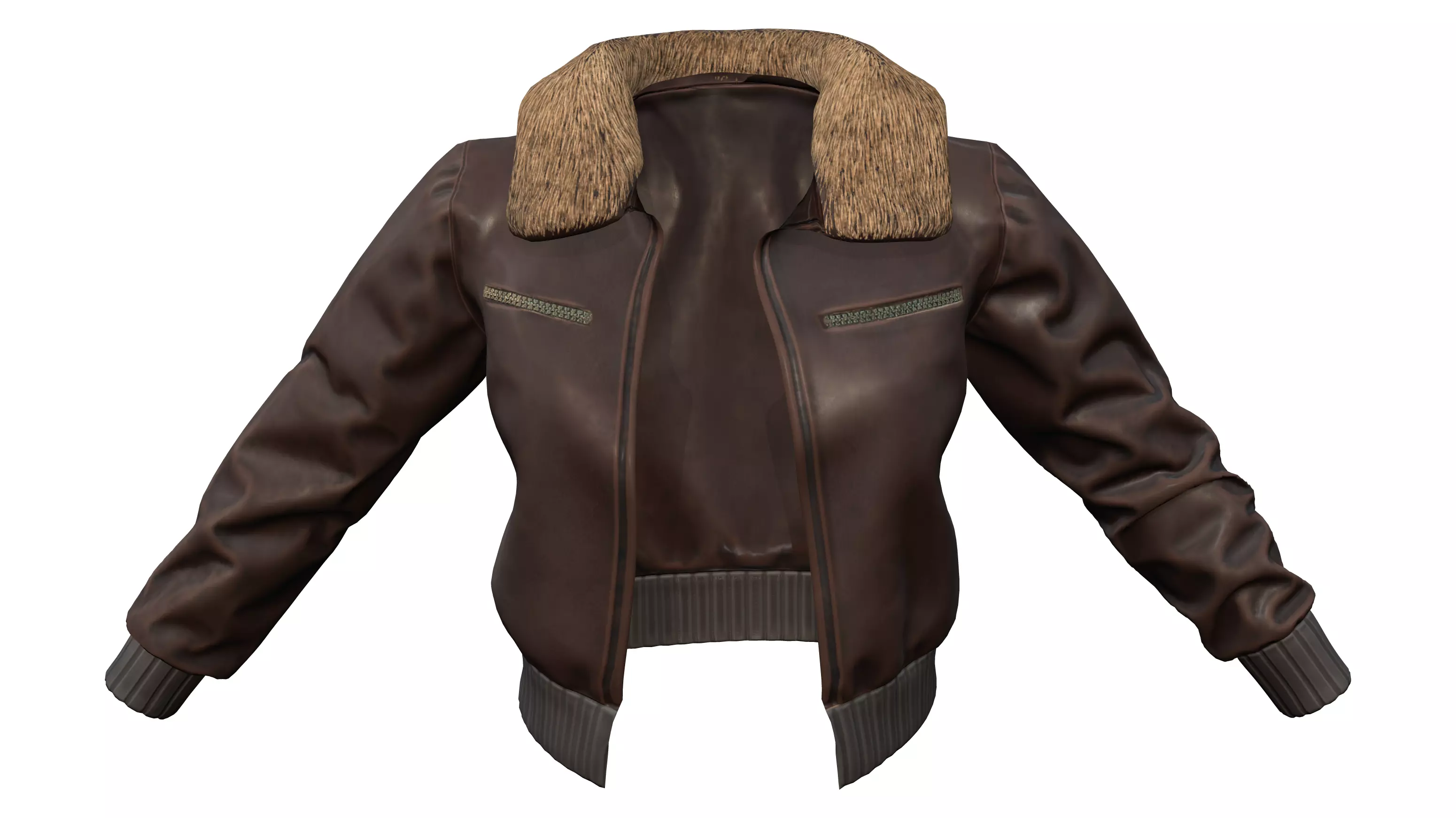 Very Versatile Fur Neck Brown Leather Jacket Low-poly 3D model