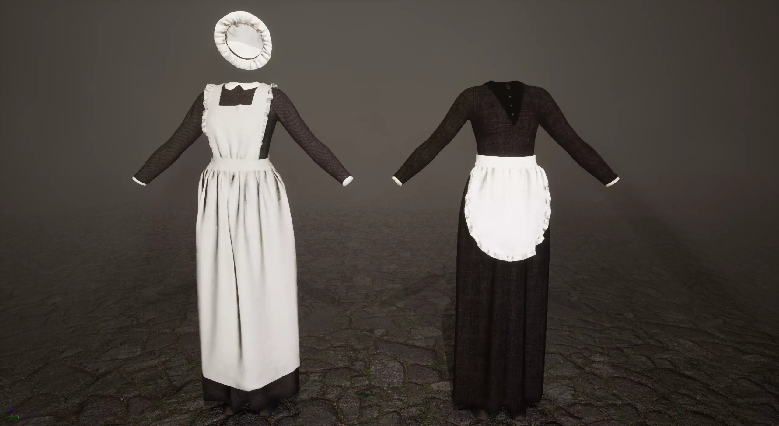 Includes two aprons, bonnet, boots, and a single dress mesh with four texture options