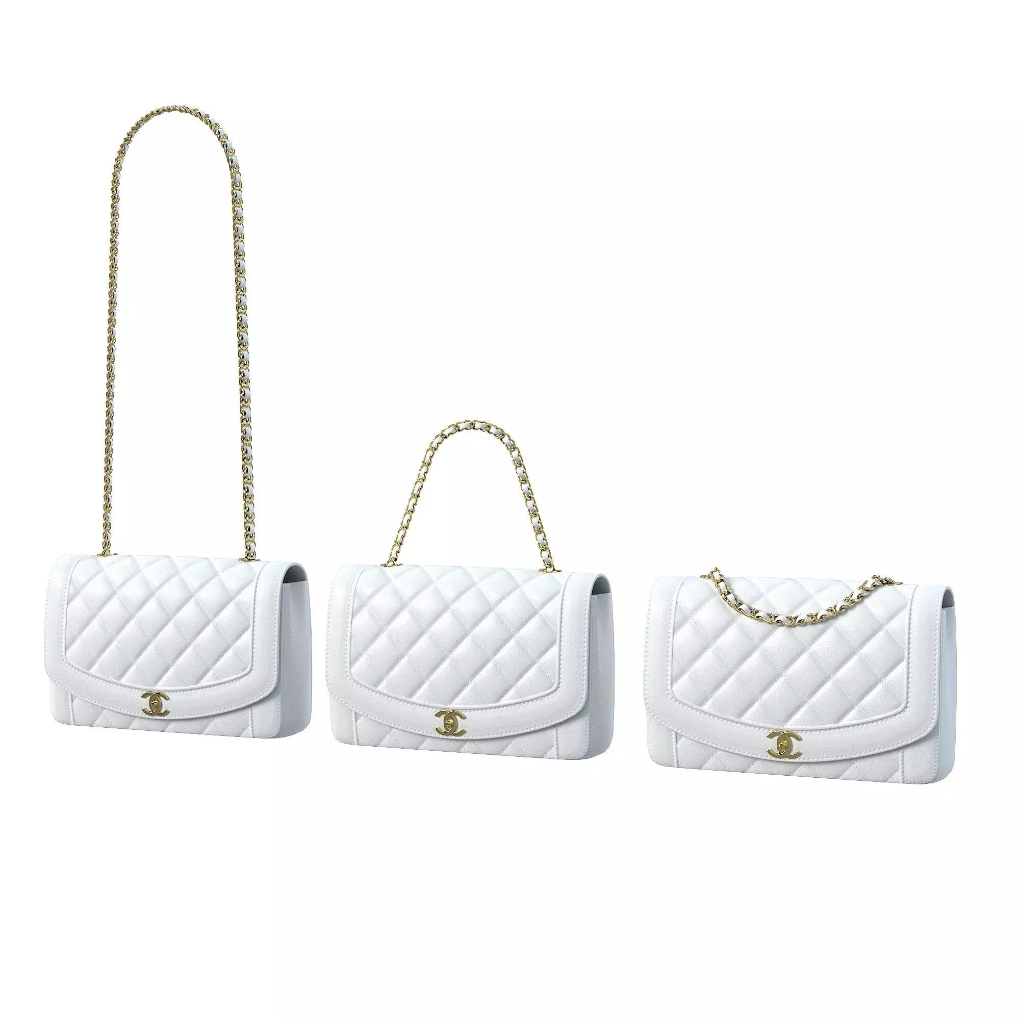 Vintage Medium Diana Flap Bag White Low-poly 3D model