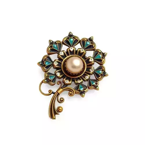 This highly detailed 3D model meticulously captures the exquisite elegance of a vintage or antique-style brooch. It features a prominent, lustrous central pearl, serving as a captivating focal point. Surrounding the pearl is an array of sparkling clear gemstones, each carefully placed to enhance its luxurious appeal. These elements are beautifully set within an ornate, aged gold metallic framework, showcasing intricate craftsmanship. Furthermore, intricate teal-colored enamel-like accents are integrated into the design, adding a distinct touch of sophistication. The overall aesthetic, with its delicate filigree and scrollwork, is reminiscent of classic jewelry and historical artistry. This versatile model is ideally suited for a wide range of creative applications, including historical game development and immersive augmented reality (AR) experiences. It’s also perfect for high-fidelity digital art projects and sophisticated architectural visualization scenes where a touch of luxury is desired. The asset is optimized for both real-time applications and static renderings. It boasts clean, efficient topology, ready for subdivision to achieve even greater levels of detail for close-up renders. Fully UV unwrapped, this model comes with high-resolution PBR (Physically Based Rendering) textures, ensuring a realistic and visually rich appearance across various rendering engines. Supported file formats include GLB, OBJ, STL, ABC, DAE, FBX, USD, and PLY, guaranteeing broad compatibility with most 3D software and platforms. This elegant brooch model promises to add a touch of timeless beauty and historical authenticity to any digital collection.