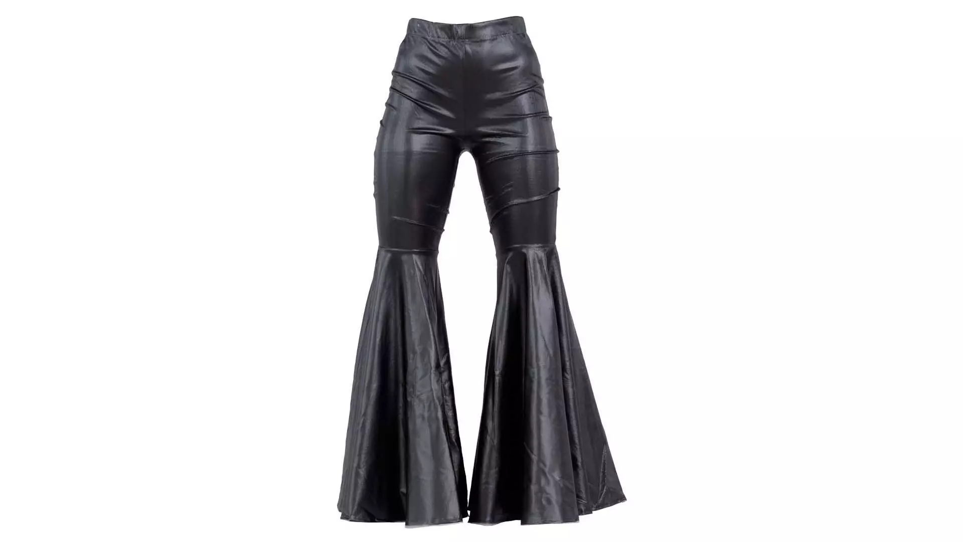 3D scanned model featuring a woman wearing black leather pants. This model, vinyl disco flared pants, has been created using photogrammetry from a real world object.The raw scan data has been cleaned, retopologized and UV-unwrapped using Zbrush. The result is a low poly mesh with baked maps. The .obj and .mtl are configured so that maps will load automatically in the shader (tested in Blender). In addition, a Blender scene is provided with the model and shader already set up for rendering and export. Detailed information below: