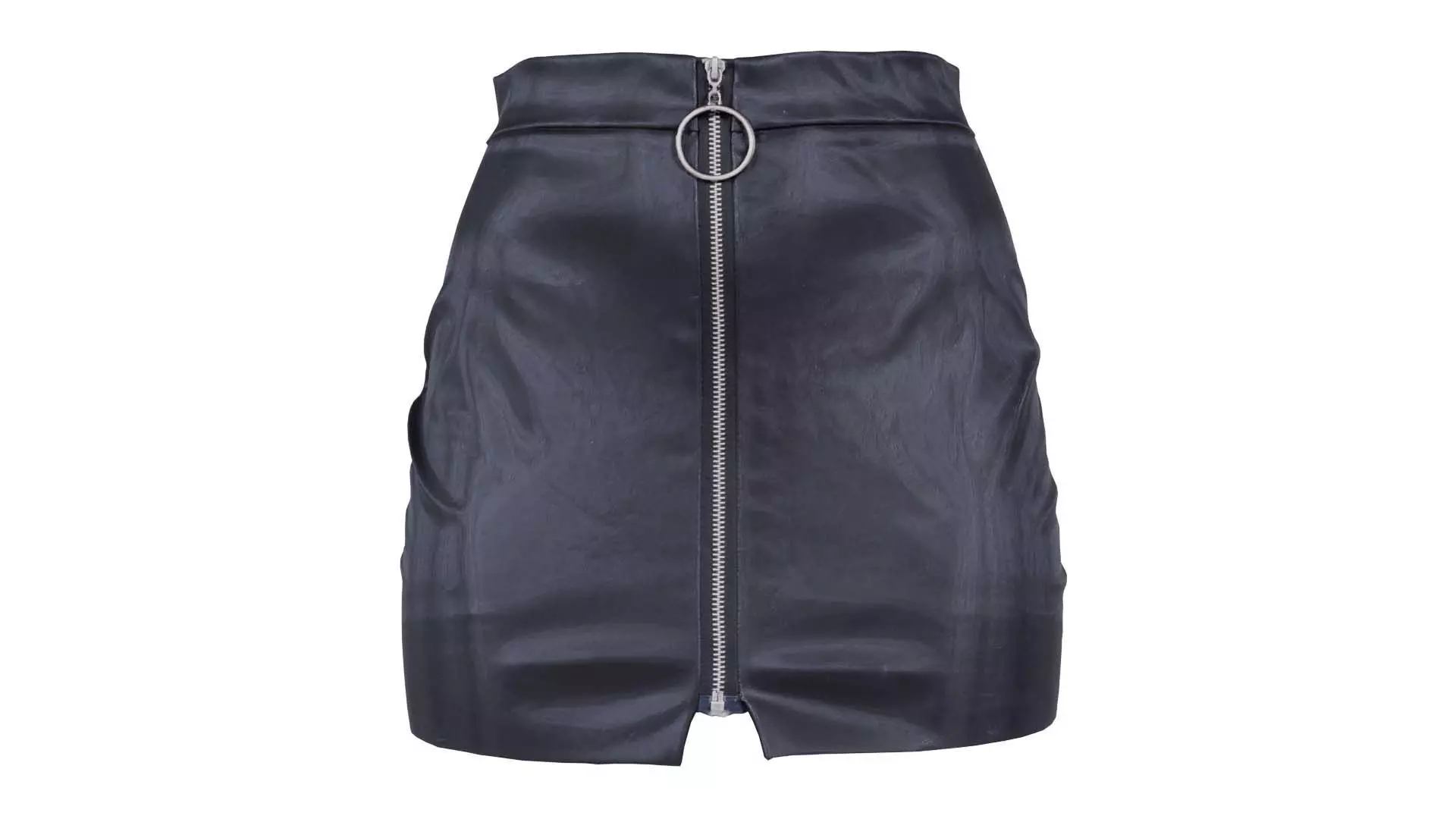 3D scanned model featuring a black leather skirt with zippers on the side. This model, vinyl o ring mini skirt, has been created using photogrammetry from a real world object.The raw scan data has been cleaned, retopologized and UV-unwrapped using Zbrush. The result is a low poly mesh with baked maps. The .obj and .mtl are configured so that maps will load automatically in the shader (tested in Blender). In addition, a Blender scene is provided with the model and shader already set up for rendering and export. Detailed information below: