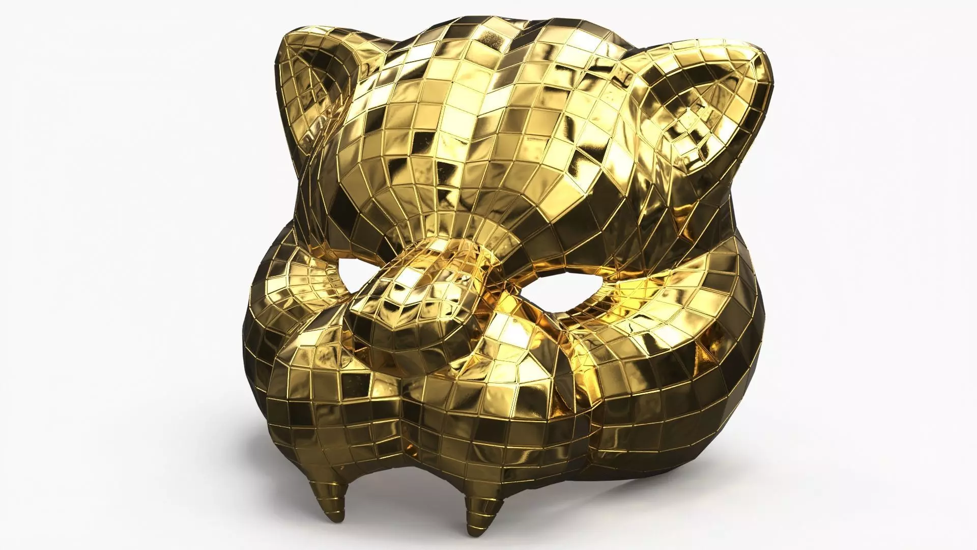 VIP Tiger Mask is a 3d model of an animal-inspired mask, intricately designed to resemble a majestic panther with a golden, reflective finish.