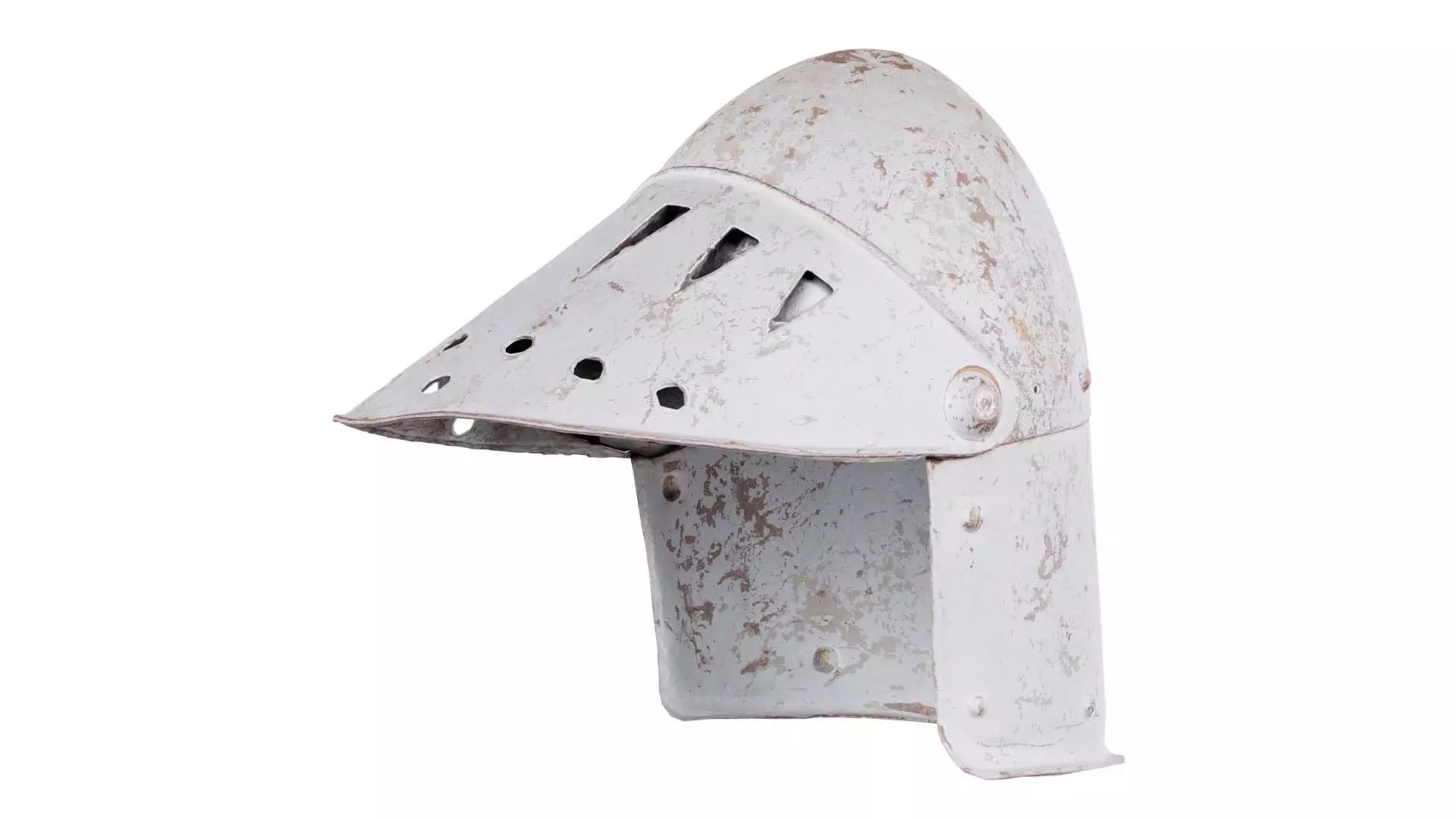Polygonal Miniatures presents visor helmet open, a model from our 3D scanned catalogue. The model, an old white helmet with holes on the side, is obtained by photogrammetry, and scanned using SLR camera's.Processing takes place in Zbrush and Photoshop and the resulting 3D model has unwrapped, non overlapping UV's, and a texture and normal map. Before publishing, we make sure the model has real world scale (meters), correct shader setup and is centered at the origin.Apart from the various file formats, we also offer a Blender file with material and textures set-up, ready for export and rendering. More info can be found below: