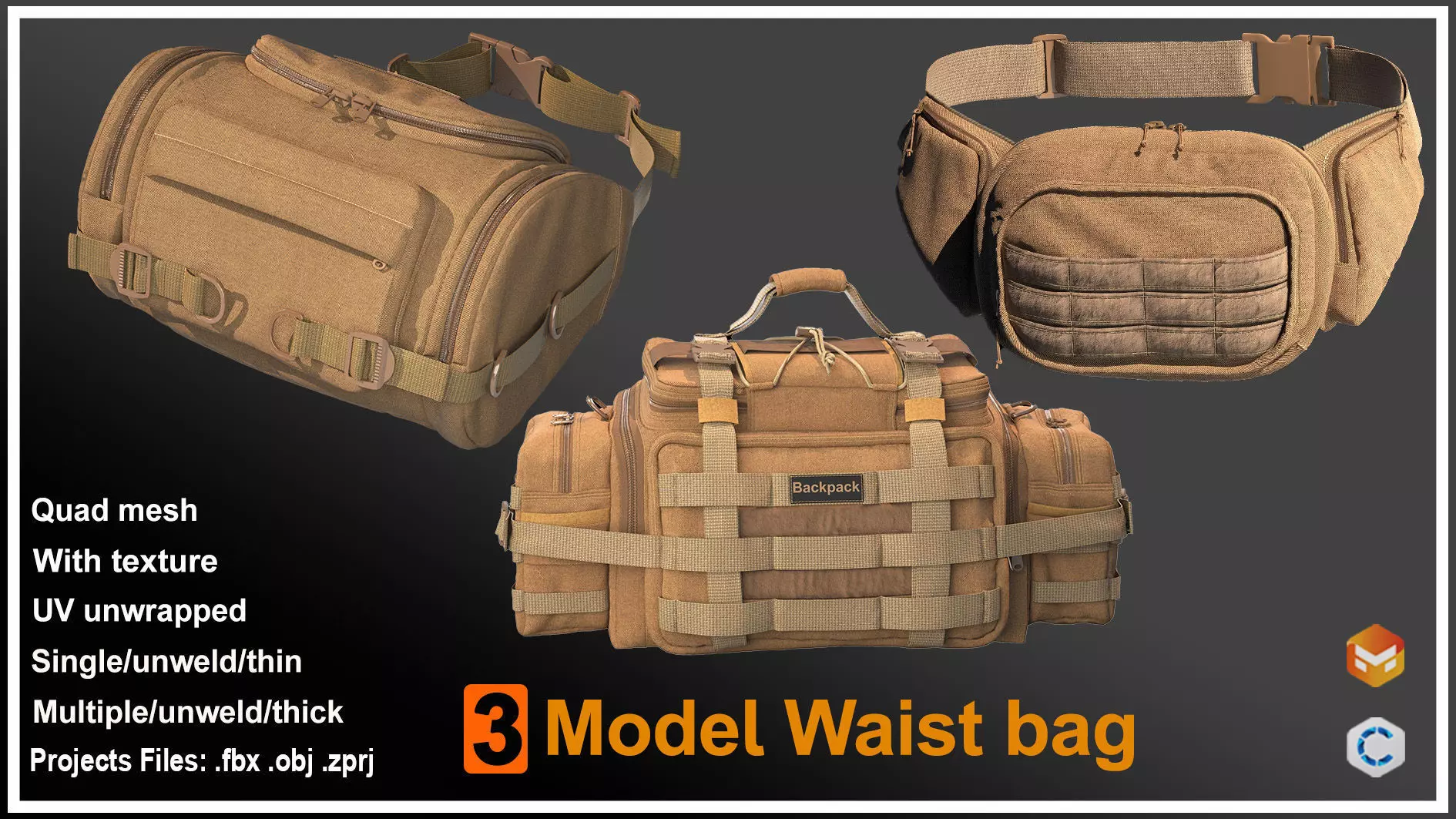 This Multifunctional waist bag is modeled in clo3D / marvelous designer software and you can use this Multifunctional waist bag in your projects.