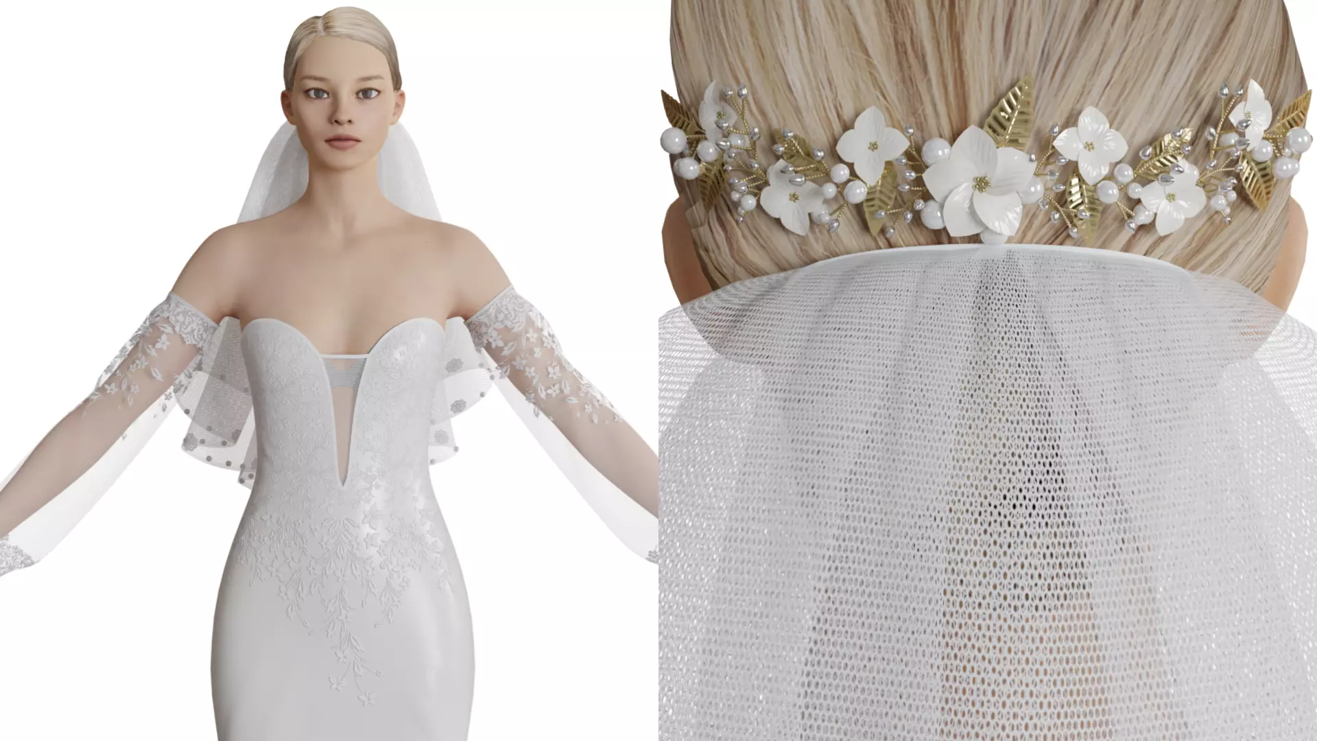 3d model of Wedding head veil no dress 3d model. Woman charecter not including in file. The file was created in Blender3.0 Detailed design that allows for close-up renders. Inside the buildings looks neat aswell and clear wireframe. Uvmap is ready. Easy to adjust, Just put the model in you scene.