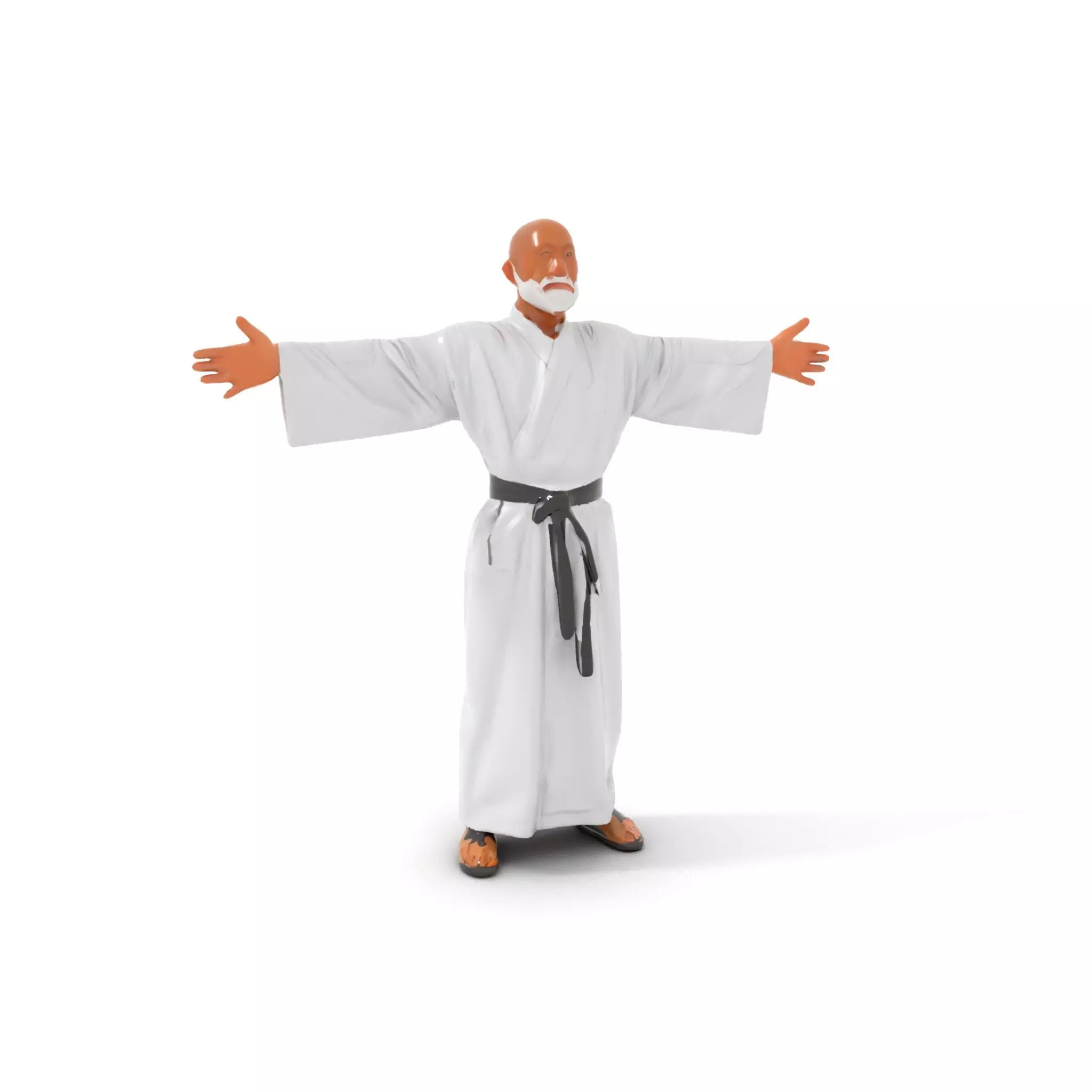 This model pack features a traditional white karate gi, complete with a black belt and authentic sandals, offering an accurate and detailed design suitable for martial arts scenes and animations.