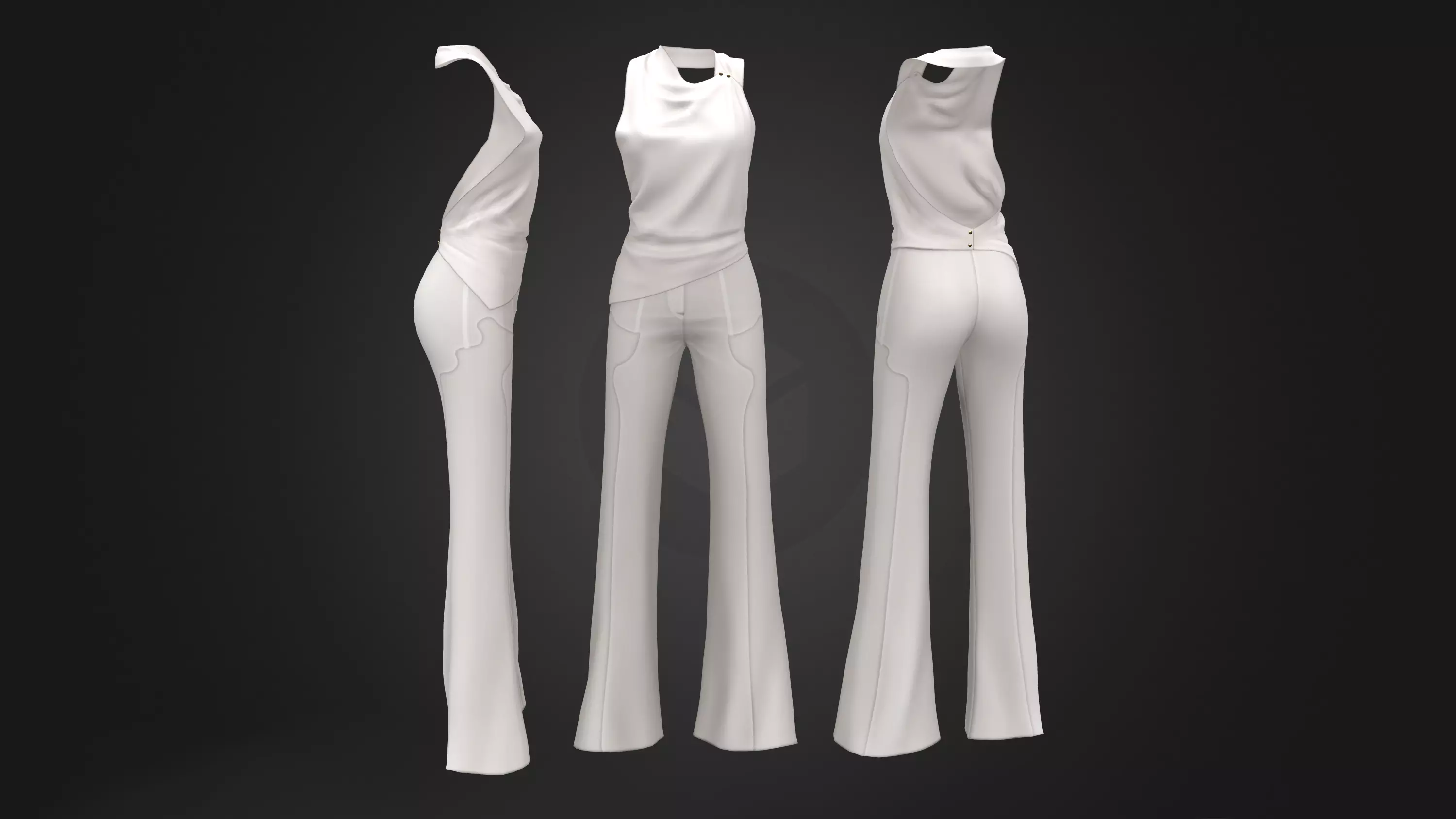 White Pants Sleeveless Pinned Cowl Neck Outfit Low-poly 3D model