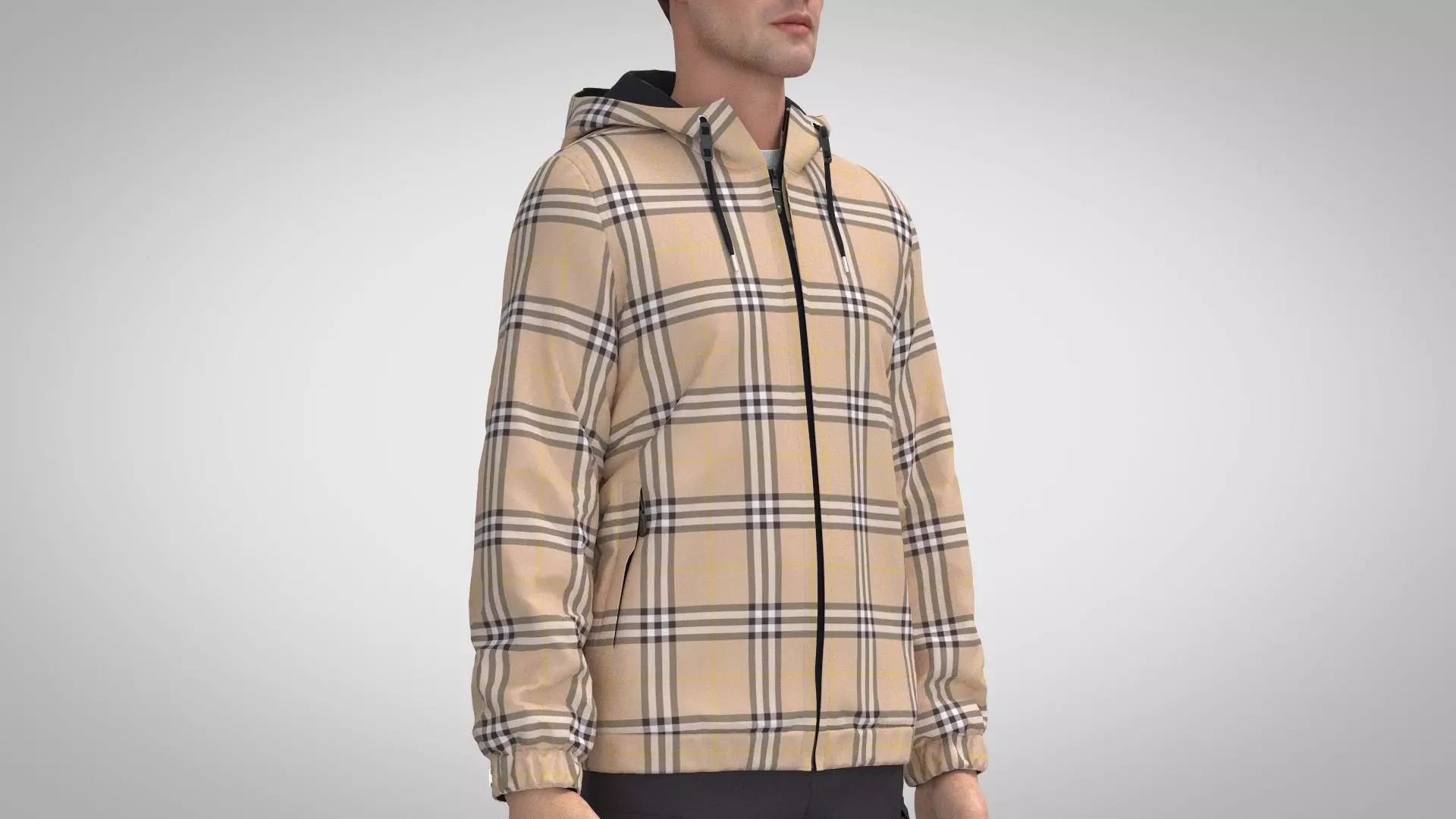 Windbreaker man wearing plaid hoodie and pants 3D model