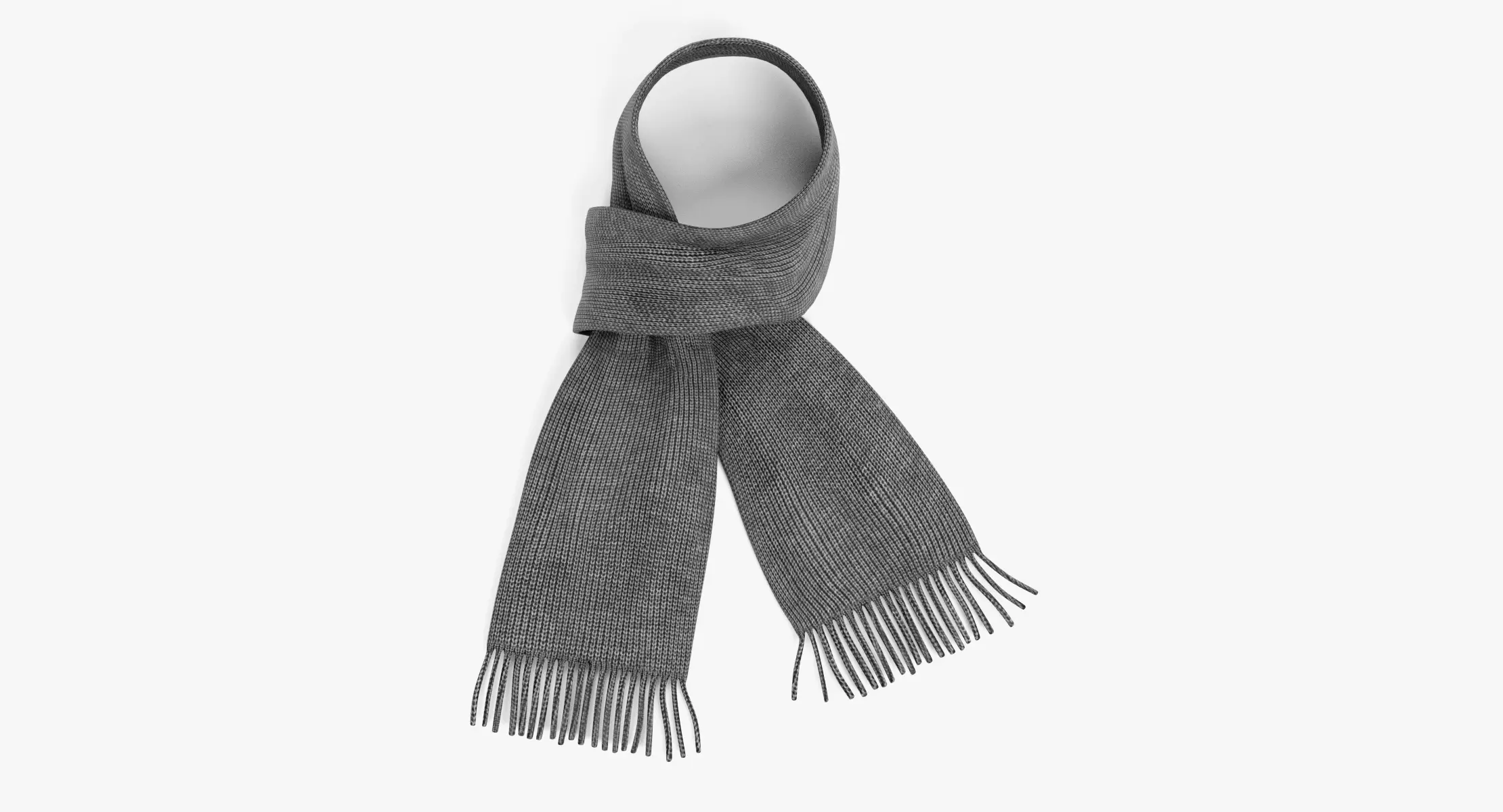 A realistic knitted winter scarf modeled in a natural wrapped pose around the neck. The asset captures soft fabric folds, visible knit structure, and clean proportions suitable for close or mid-range views. The neutral gray color and simple, brand-free design make the scarf flexible and easy to integrate into a wide range of scenes and pipelines.