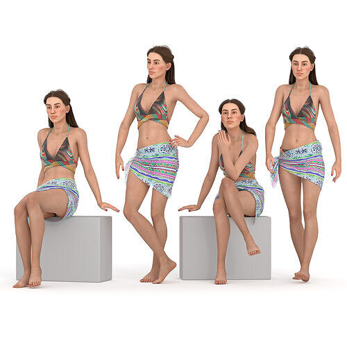 Name: woman beach wear bikiniType: modelFormat: 3Ds Max 2013Export: FBX, OBJ, MATRender: VRay (5.x), Corona (6)Polys: 207971Verts: 338529Matclasses: Multimaterial,VRayMtl,CoronaMtlUnits: CentimetersDimension: 236.82 x 90.75 x 171.98Date: 2025.2.8Preview: YesDescription:All textures are 4k Resolution.Hairs Textured with opacity map.Characters does not rigged.No third-party plugin or script required.UV Mapped: YesUnwrapped UVs: Non-overlappingHope you enjoy it!