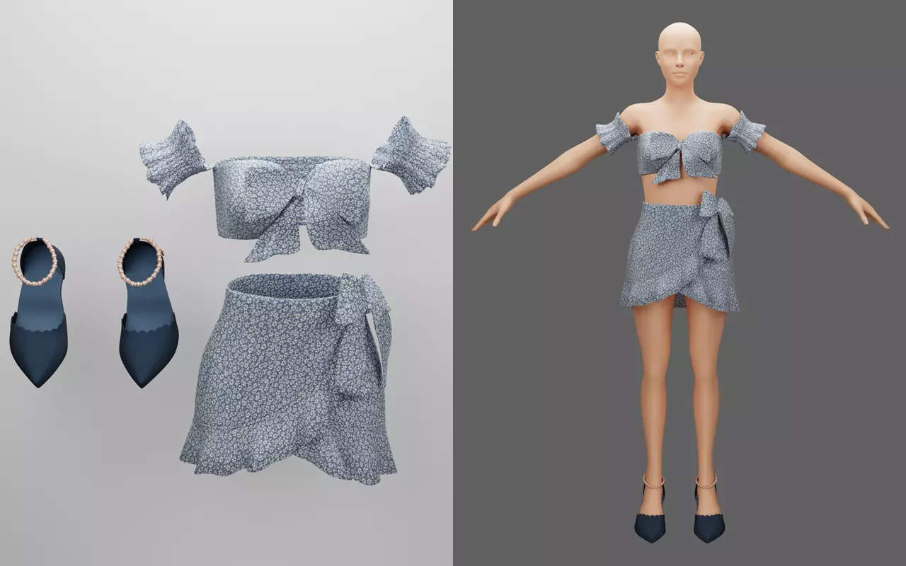 TEXTURES including :PBR texture for bake file : Shirt and skirt (4096x4096 quality), shoes (2048x2048quality)PBR texture for shoes original file (1024x1024 quality)