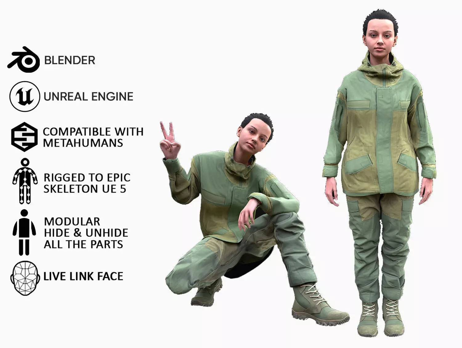 • UE 5.1-5.2 - Rigged to Metahuman Skeleton, Modular (Body + Clothing)
