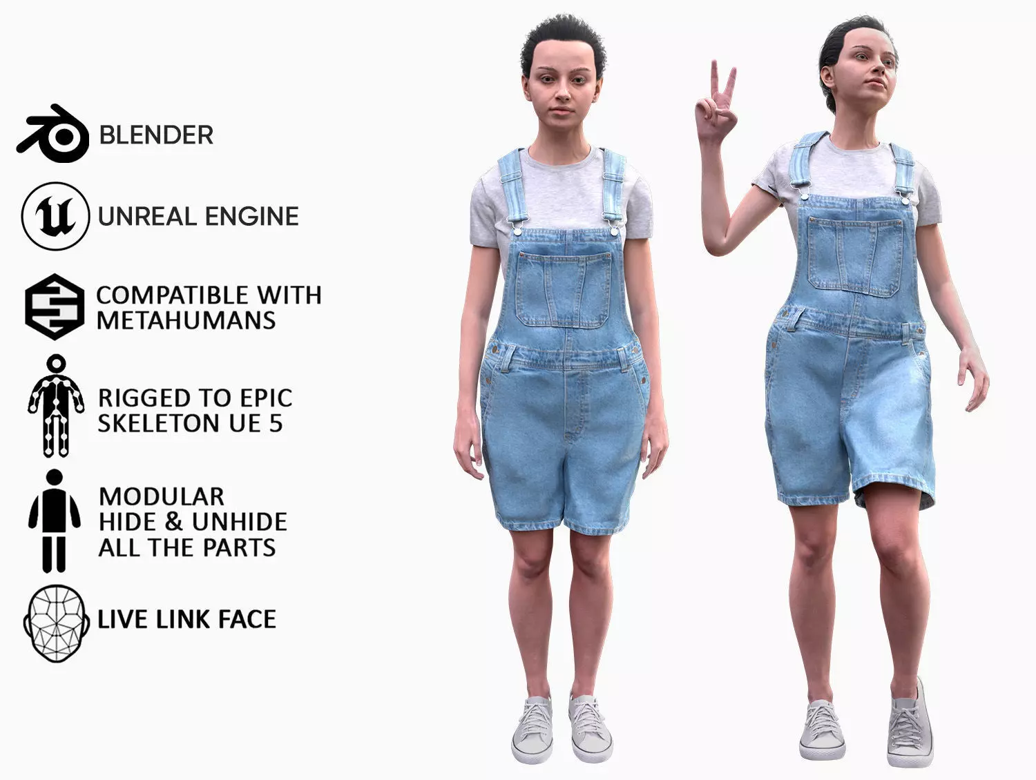 Woman in Overall 3 - Modular - Rigged Low-poly 3D model