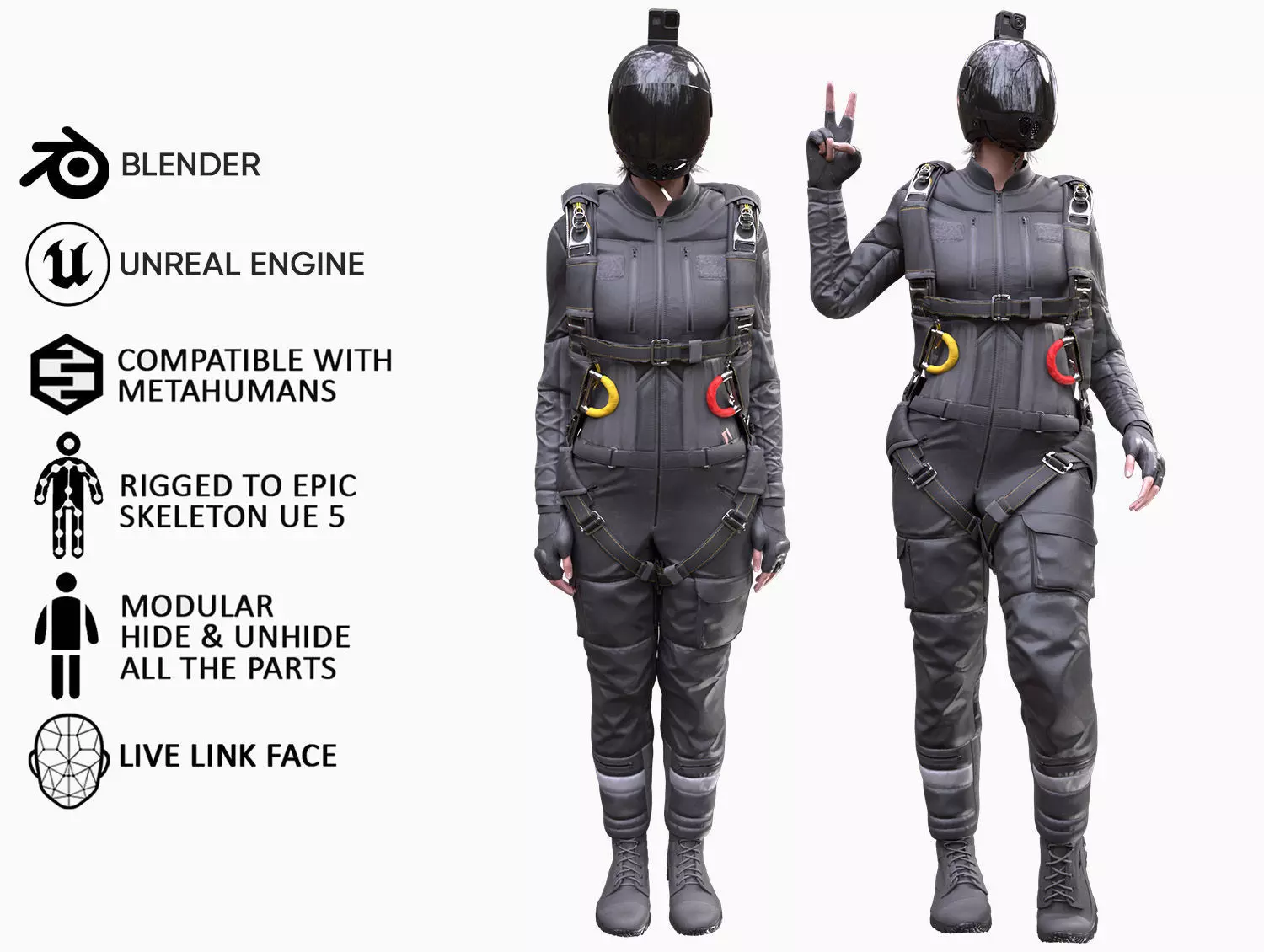 (New version - UE 5.1-5.2) 100% compatible with female Metahuman (Normal/Average body - MH Skeleton)This is not a Metahuman's body and face. This is our creation.But this body has exactly the same shape as the Metahuman's body (Normal/Average)So you can put this Outfit on your Female Metahuman (Normal/Average)