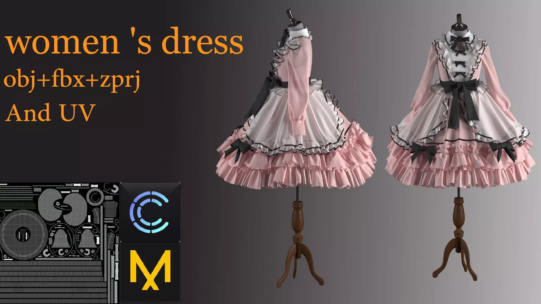 This dress was designed in Marvelous Designer software and rendered with Corona plugin. The mannequin was also modeled in 3D Max software, and the UV was done by Rhizome software, and both the dress and the mannequin have UV.