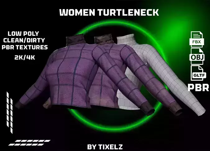 3D Women’s Turtleneck – Clean & Dirty Textures (FBX – Thick, GLB & OBJ – Thin + 2K & 4K)