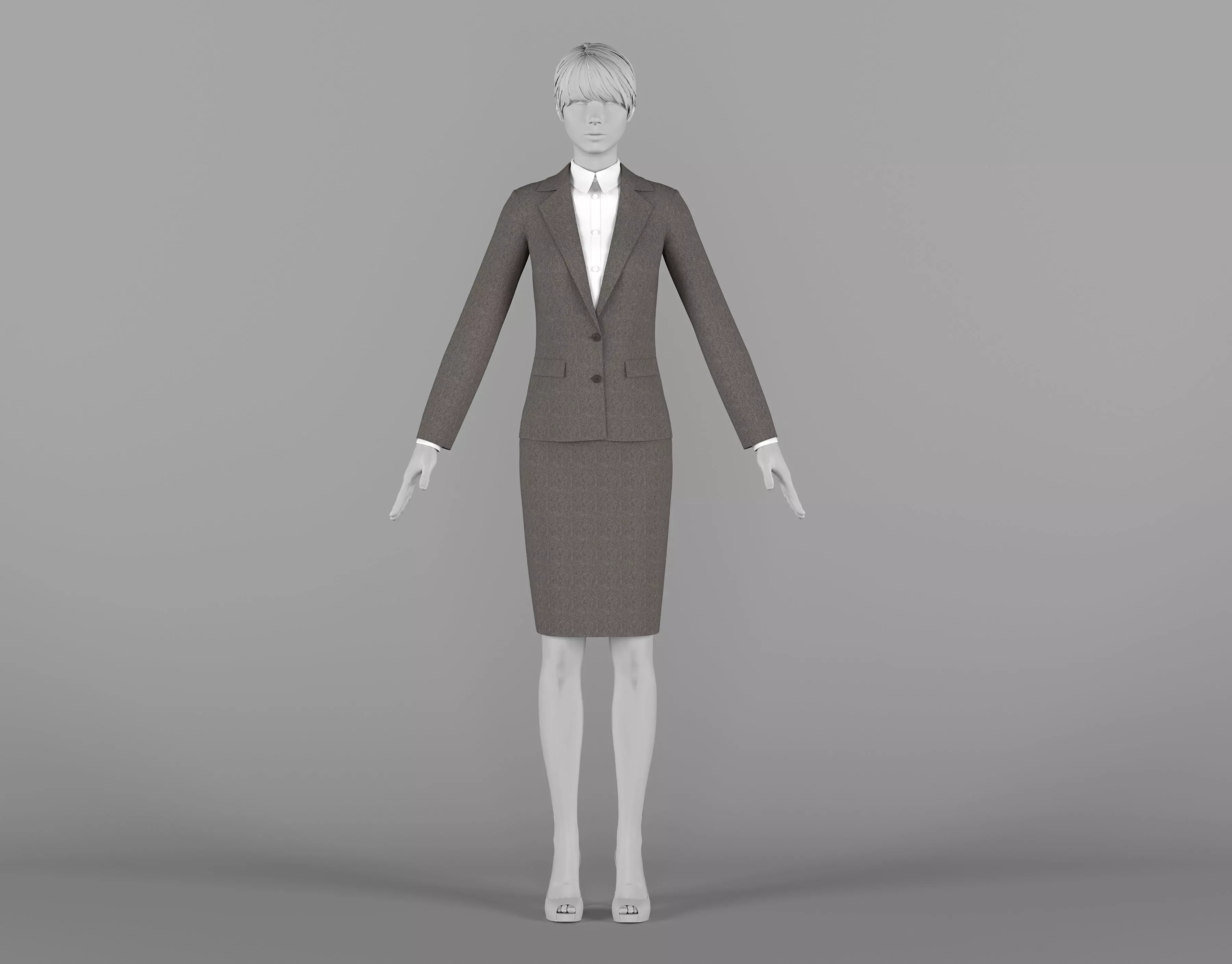 High poly 3D formal suits for women in 2 textures.