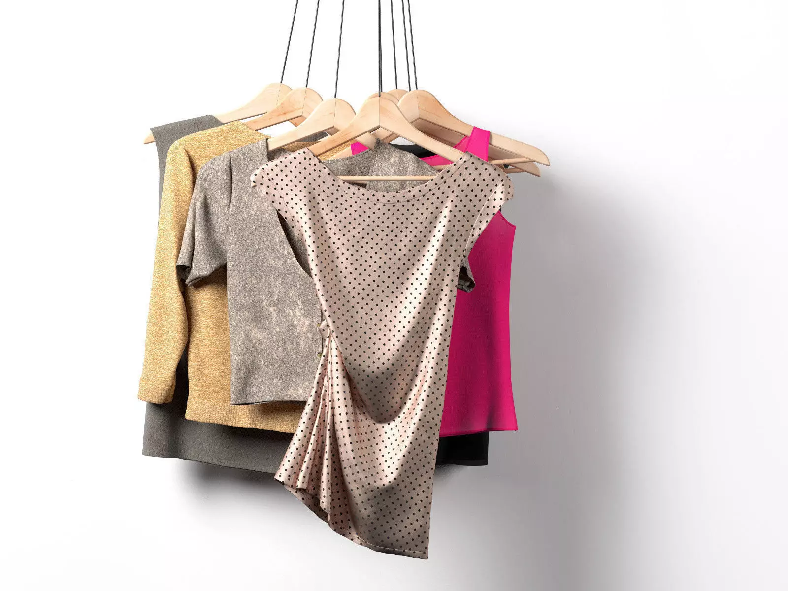 This 3d model Women's Clothes on Hangers has a fully textured, detailed design that allows for close-up renders. Every model has been checked with the appropriate software.